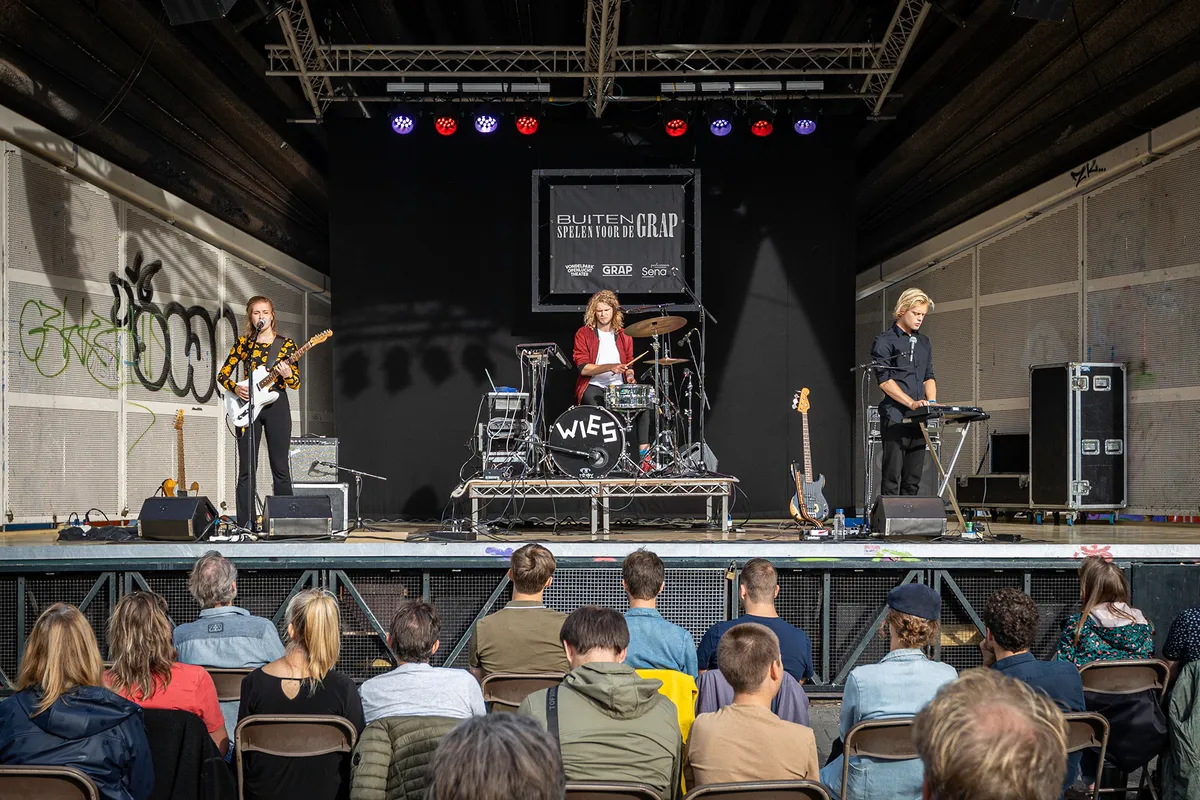 Grap Amsterdam Popmusic organiseert in samenwerking met Sena Performers een viertal showcases onder de noemer Buitenspelen voor de GRAP. Afgelopen zaterdag deed de Nederlandstalige indiepopband WIES de aftrap in het Vondelpark Openluchttheater. Vanwege de Corona-maatregelen is er een beperkte capaciteit en speelde WIES twee shows op één middag. We kregen onder meer een nieuw nummer te horen en zagen de band aan het werk met een nieuwe drummer. Ook werd de release van de nieuwste single ‘Maar ik doe het toch’ gevierd.