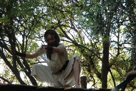 ,,Wat ik te gek vind aan het Wilgenportaal? De kerk heeft een vaste rol, een blijvende functie, in combinatie met alles wat er al gebeurt. Wij willen juist onverwachtse shit hierheen trekken, voor het hele Landjuweel,” vertelt Matthijs Bill Rietveld, terwijl hij slingerend door zijn sprankelende houten sprookjesparadijs klimt. De programmering is in handen van Niek Stronks. Jonathan van Duijn is kunstenaar, vooral actief in het theater, en bouwt graag. Zijn vorige collectief At World’s Ende waar ook Bill bij zat - is uit elkaar gevallen, waardoor er ruimte is gekomen voor een nieuw project.