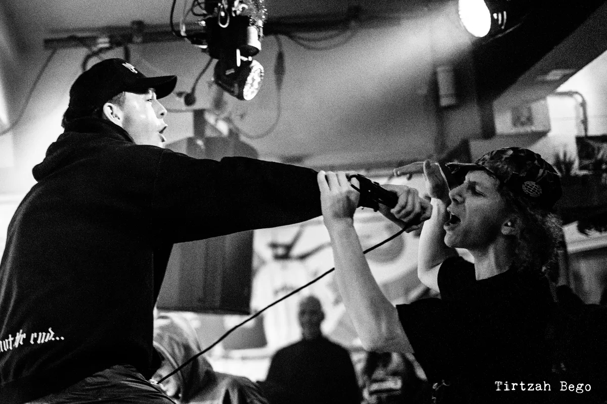 De banner bestaat uit een Zeeuwse vlag die de met een spuitbus gespoten tekst ‘Headlock Z.L.H.C’ draagt, een afkorting voor ‘Zeeland Hardcore’. Geen fratsen dus, hardcore uit Zeeland is duidelijk. Met een combinatie van hardcore en thrash en her en der een portie deathmetal voor de smaak, geven ze een show weg met een toffe variatie aan geluid. Na een paar nummers staat het publiek met volle overtuiging te 2-steppen en de gitarist doet vrolijk mee op het podium. Aan het einde van de set raast het publiek door de moshpit als een wervelwind van ongeleide projectielen waardoor de ruimte figuurlijk om zeep wordt geholpen.