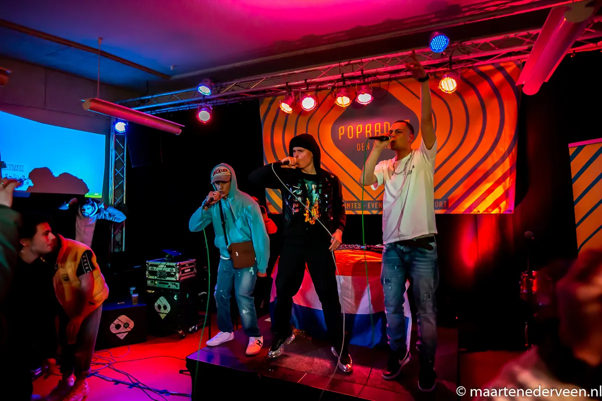 22:13 In Ruimte 15 host 54 GANG de stage. Hiphop dus. Wij steken ons hoofd voor het eerst om de hoek tijdens Illerversum (houd de site in de gaten als je wil weten wat dit is). Drie rappers, YungK, Walid en labelbaas en regelneef Spuugzat. Met name die laatste weet precies wat hij doet, de andere twee mogen nog wat werken aan verstaanbaarheid en performance, maar qua songs zit het best wel goed. Er is daar iets gaande en wij willen weten wat.