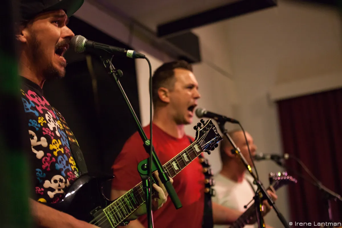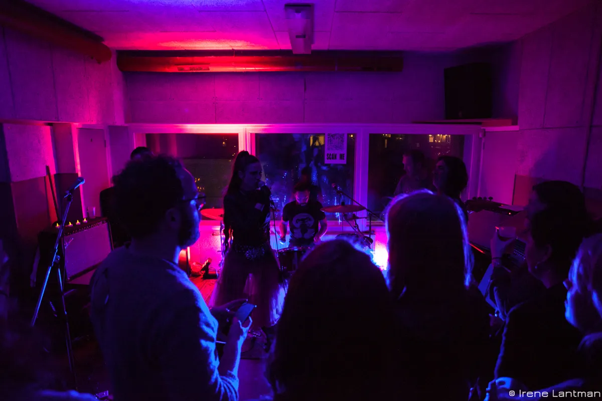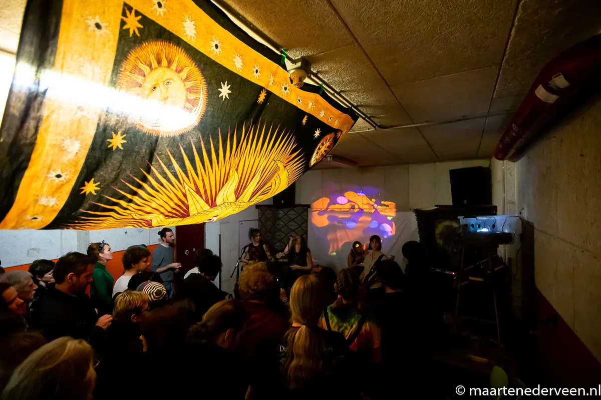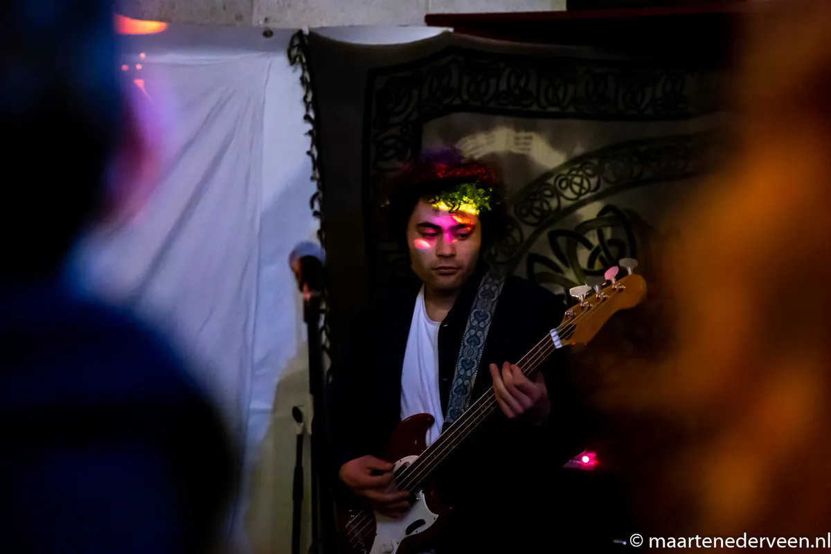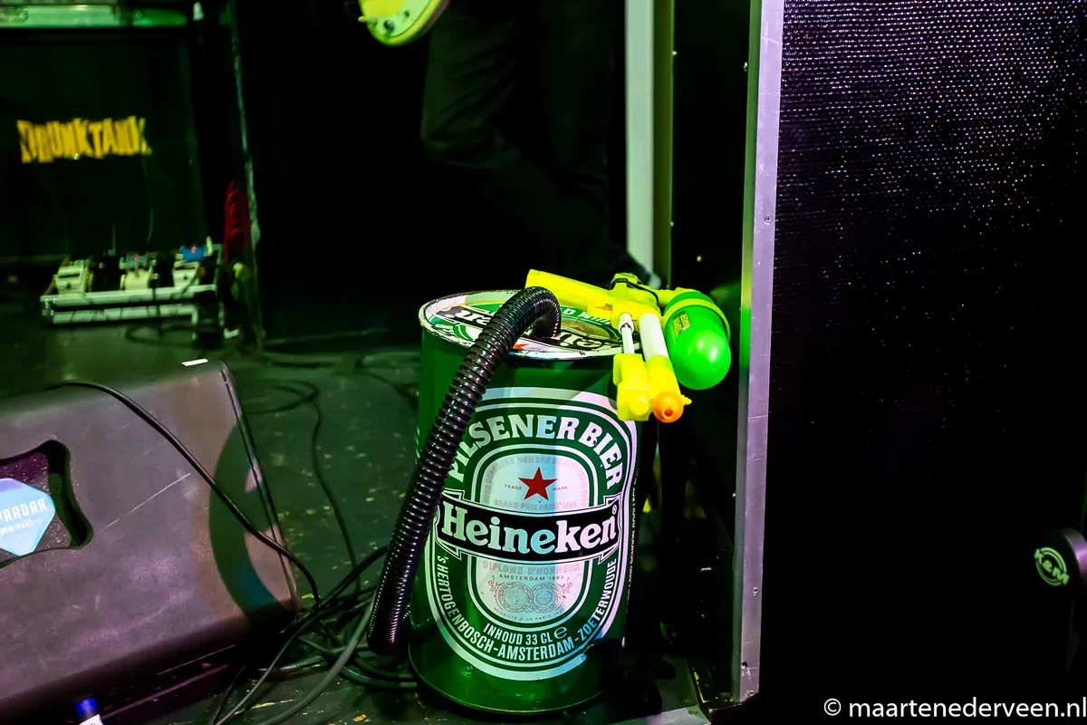 23:28 Het meurt hier naar zweet, maar dat mag de pret niet drukken. Het merendeel van het festivalpubliek heeft zich verzameld bij Baskar in de kleine Supersonic Shack. Het is gezellig. En smerig. Wij gaan door naar 54 GANG.
