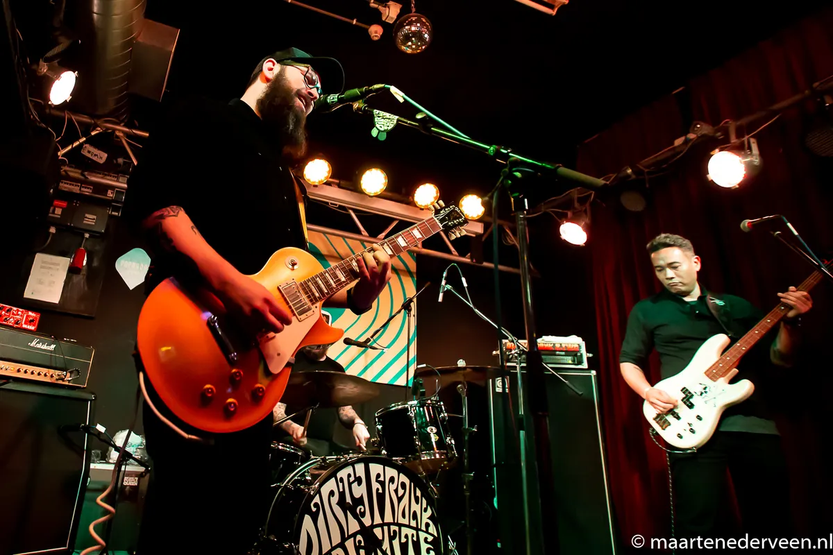 23:22 Het is laat. Wat is er nog te doen? Dirty Frank And The White Russians! In een halfleeg Radar Cafe wordt schuchter gedanst en heeft het publiek het stiekem naar zijn zin. Maar de avond loopt zichtbaar op zijn einde. Niet voor ons, wij gaan door tot de zon op komt. Of in ieder geval tot er geen muziek meer is in Popradar.