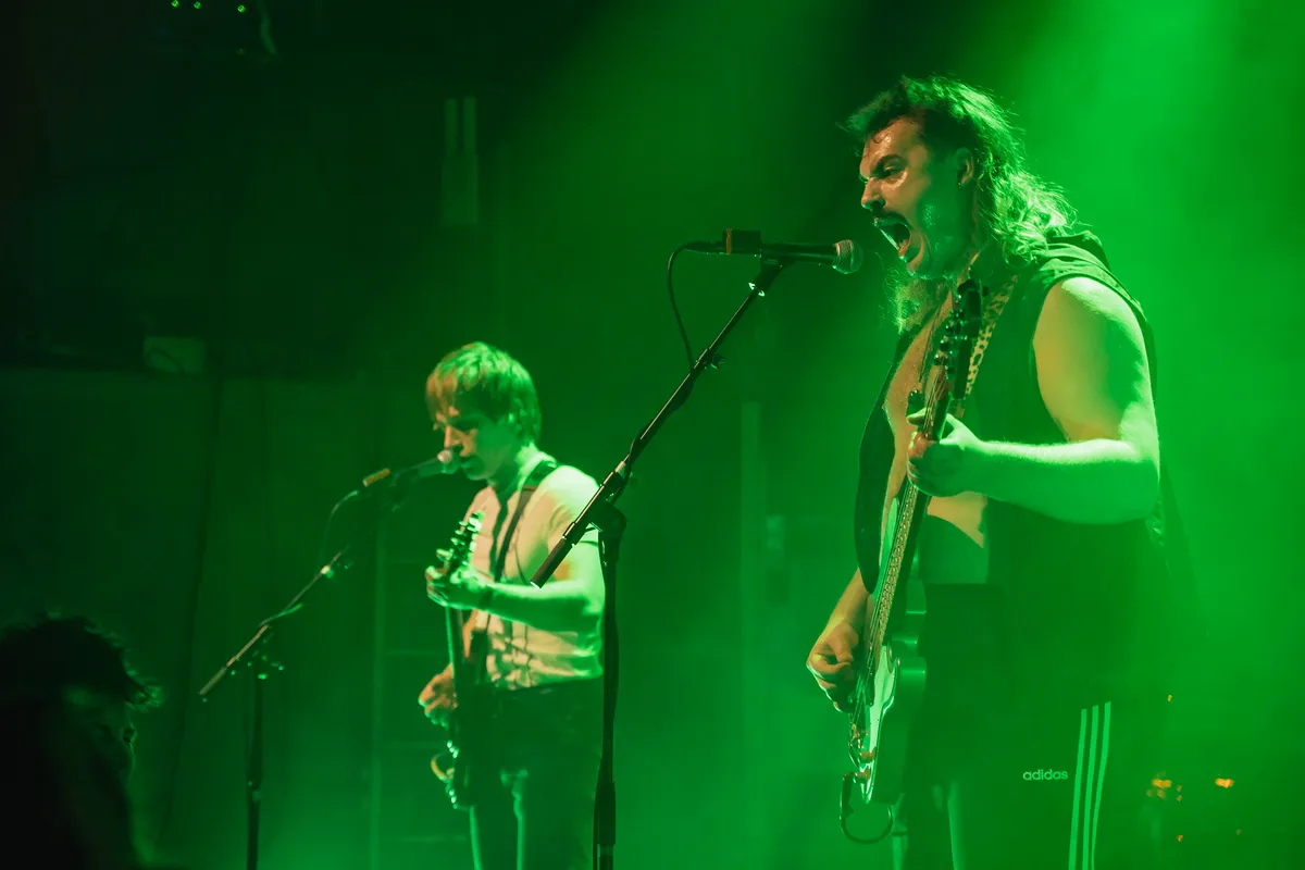 De samenstelling van het publiek verandert na het voorprogramma. Waar we eerst veel punkers zagen, vult de zaal zich nu met een mooie combinatie van jonge cool kids, grijze koppen die vijftig jaar PAARD-ervaring met zich meebrengen en alles ertussenin. Voor ons staat welgeteld één man met een Haagse mat. Valt ons een beetje tegen. Gelukkig is daar bassist Timo Prins, de belichaming van Haagse Harry, ter compensatie. Met zijn blote bast, keycord, gouden fluit en sensationele mat is hij het toonbeeld van Haagse Glorie.