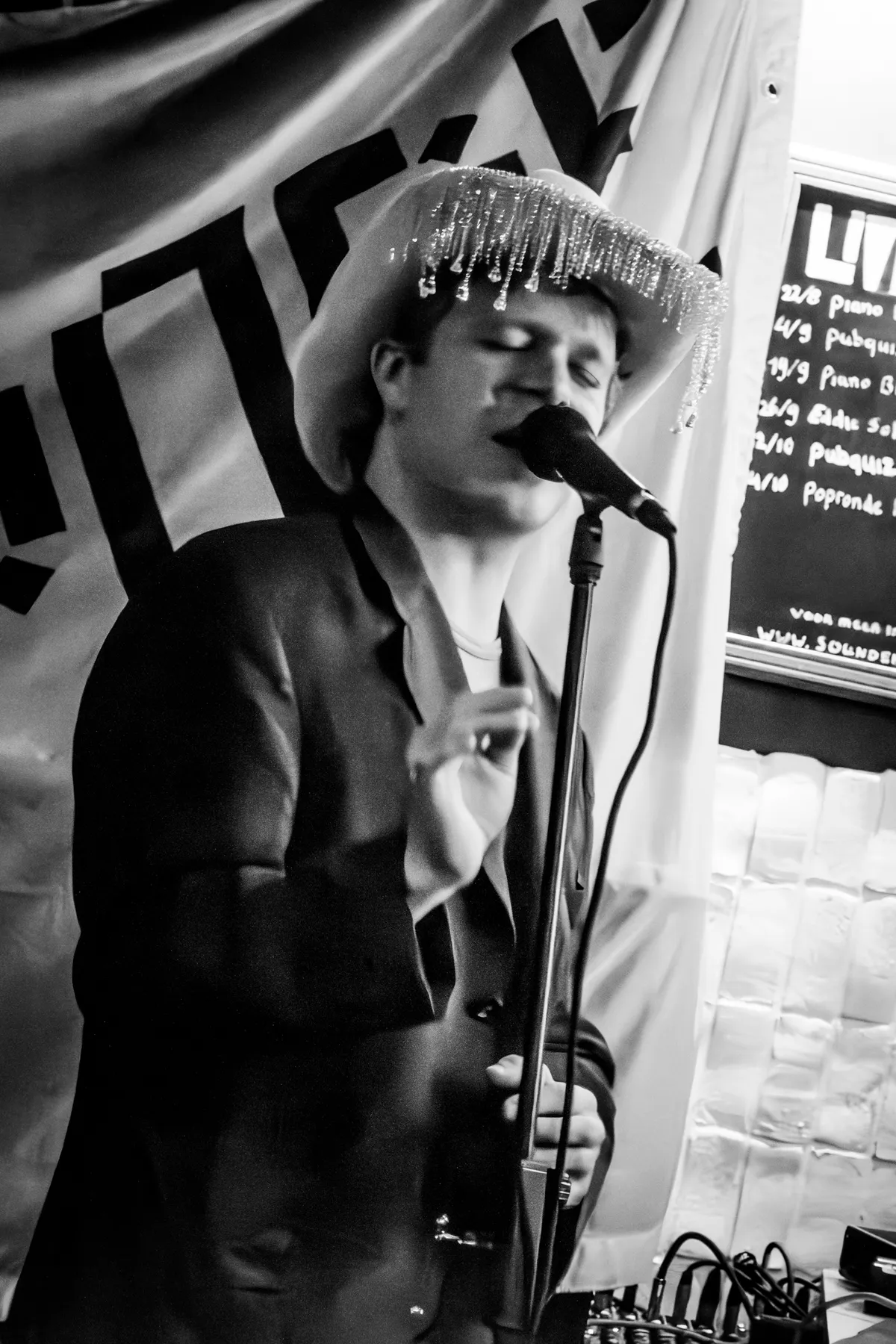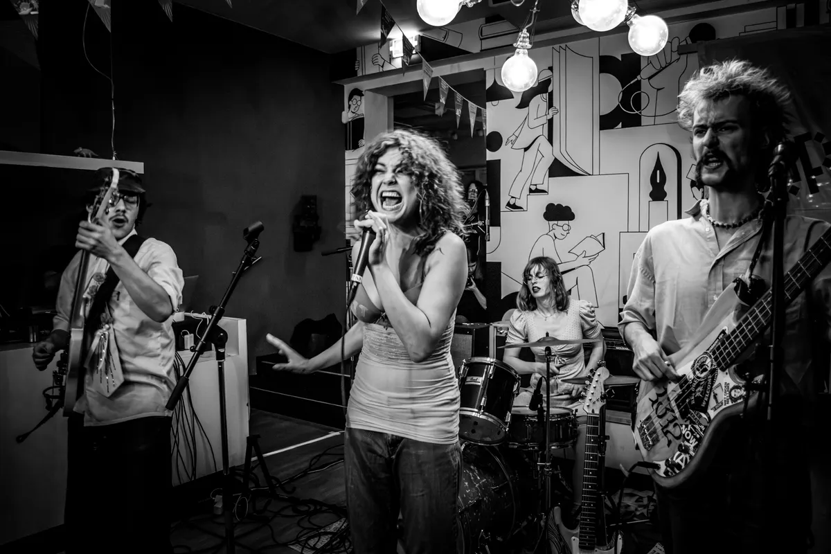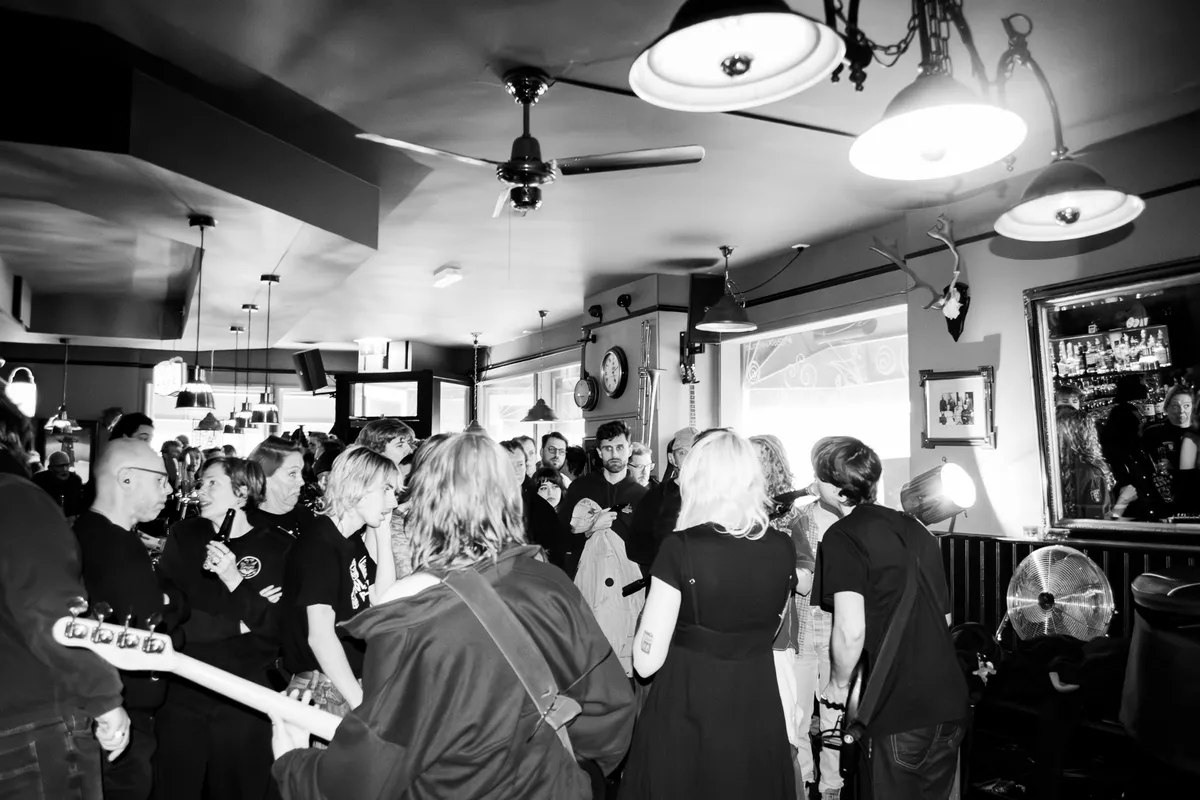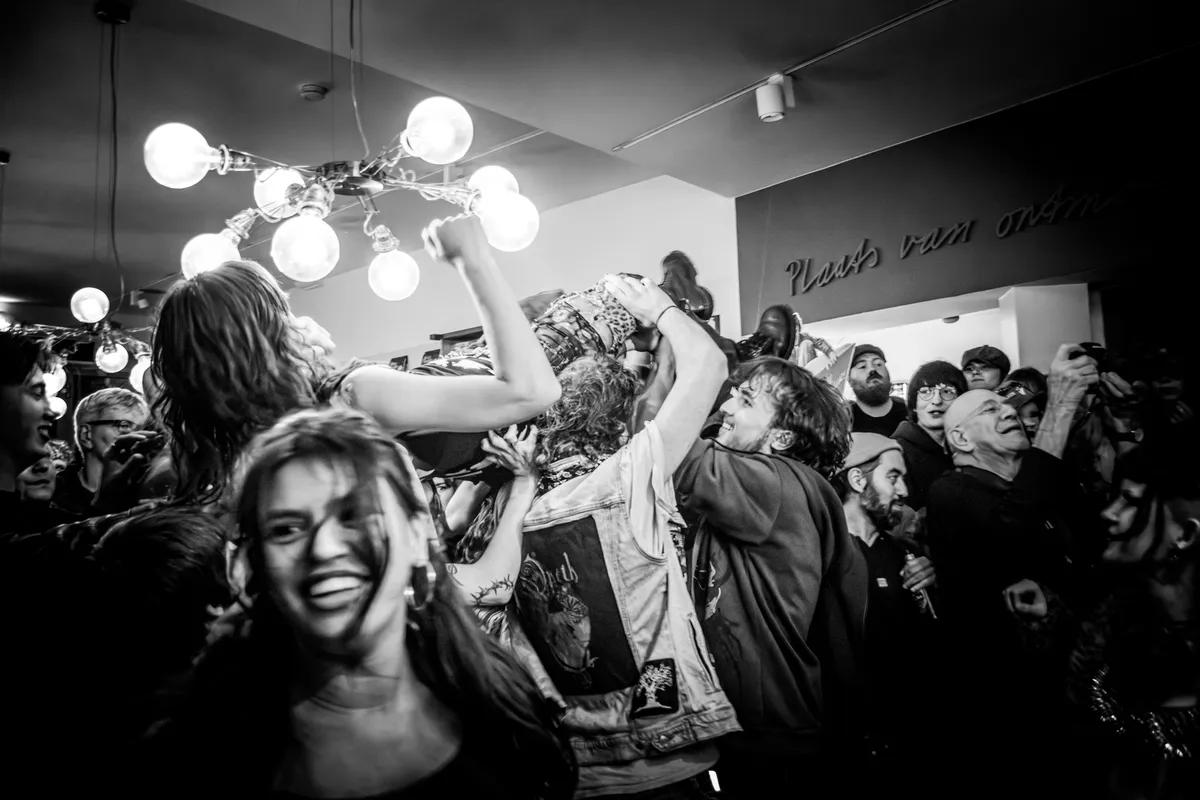 We blijven nog even de categorie ‘punk met frontvrouwen die zeggen waar het op staat’, al tapt C’est qui? uit een heel ander vaatje. Waar Clitteband nog schakelde tussen punk en ska, daar gooit dit viertal het gas vol open. We horen vooral garagepunk in de stijl van Amyl and the Sniffers, al had een brommende “and we play rock and roll” her en der ook zeker niet misstaan. Gelukkig is Café Kroon niet vies van een ruige show, want ze vroegen om een punkshow en dus krijgen ze een punkshow. Er is in de kroeg nauwelijks nog een plek te vinden, behalve voor wie de moshpit in wil. Crowdsurfers? Die vliegen rakelings langs de lampen bij het podium. C’est qui? keert de hele boel binnenstebuiten.
