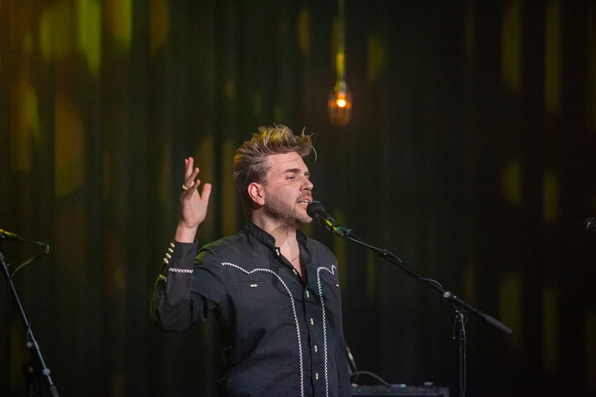 Ondanks het beladen thema van vanavond heerst er een gezellige sfeer. Woody oogt zoals altijd ontspannen, hij grapt en vertelt vanavond flink en zoekt ook veel interactie met het publiek.