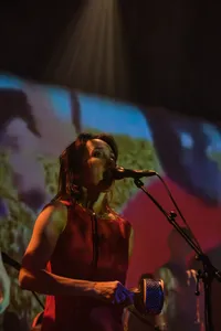Spinvis brengt de teksten gevoelig, emotief en vol overgave. Hier en daar hoor je een kraak in z’n stem, maar ondersteund door een onwijs getalenteerde band en verrassende projecties (hallo caleidoscoop-flamingo!), valt alles op z’n plek.