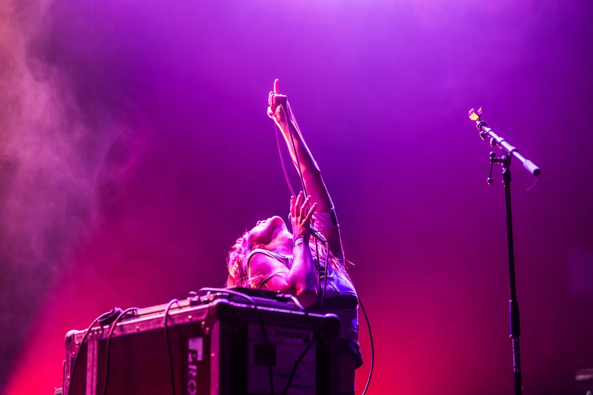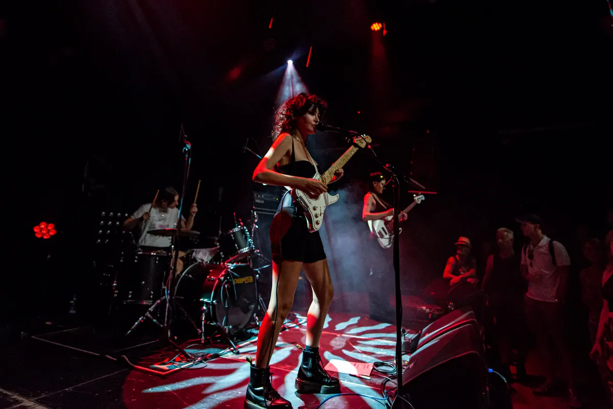 Welcome to The Village is voor de frêle Vlaamse Sylvie Kreusch geen onbekende; ze was op eerdere edities present met de bands Warhaus en Soldier’s Heart. Eind vorig jaar lanceerde ze solodebuut Montbray. Een verwerkingsplaat waarop ze intens dealt met een verbroken liefdesrelatie en de verdere ins en outs van liefde en overspel. Hetgeen vanavond in haar presentatie ook zonder blikken of blozen wordt geventileerd. Die loopt goed over van de sensualiteit en gaat van haar zinneprikkelende dansmoves tot aan het legen van confetti uit een doorzichtig handtasje, dat aan één kant een fallus heeft, toe. Met zekere internationale allure zet deze femme fatale vanavond de grote zaal van Neushoorn in een ontwapenende performance naar haar hand. Gestut door haar feilloos spelende band, laveert een ook spatzuiver zingende Kreusch tussen meeslepende, melancholische pop met een filmische feel – alwaar enig raakvlak is te bespeuren met Lana Del Rey, vooral qua stemgeluid - en broeiende swings, met ondermeer doorvloeiende Afrikaanse ritmiek. Kreusch ademt een geraffineerde grandeur, in haar innemende en creatieve maar toch ook heel toegankelijke sound. Mooi, hoor. (JdR)