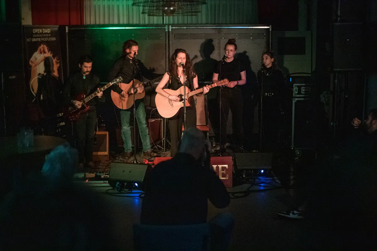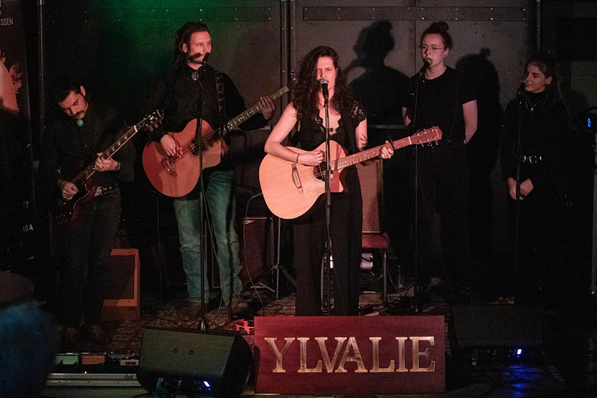 Geheel gekleed in matchend zwart met country-accenten staat de band (Chiron Schut op gitaar, Cas Mooij op bas, Yrsa Joosten en Rebecca Wieringa op achtergrondzang) YLVALIE bij in haar eerste set in deze formatie.