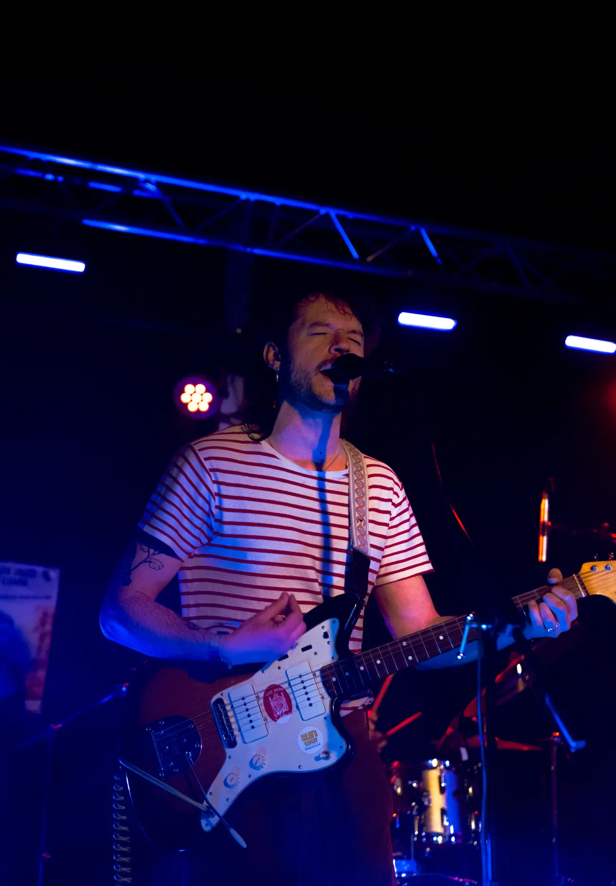 Met de folky popcovers van Hazy Days wordt de avond afgetrapt. Nog wat onzeker stond het drietal op het podium, en in combinatie met het zwartgeklede publiek moest de sfeer eerst nog even worden aangevoeld. Toch komt het optreden halverwege goed op gang en zingt de vocalist haar zuivere noten op nummers die een groot gedeelte van het publiek kent en soms zelfs zachtjes meezingt. Het is wel enigszins te merken dat het trio niet gewend is om op een podium te staan, ze stellen zich pas voor nadat de set afgelopen is.