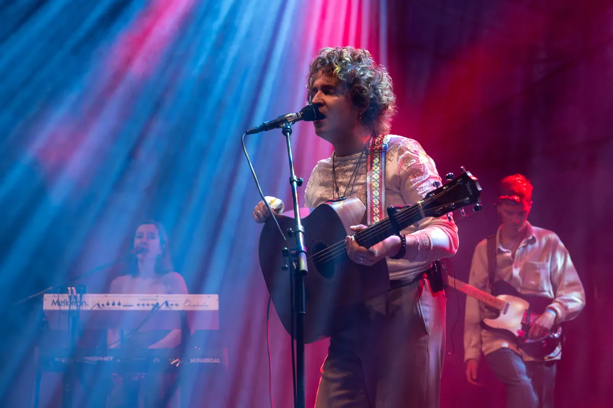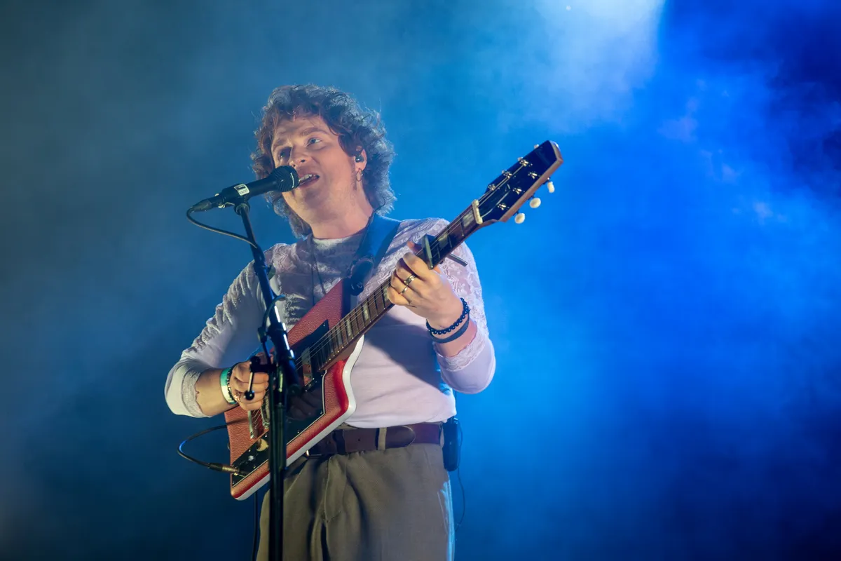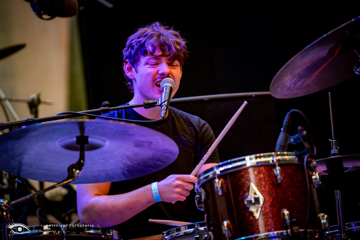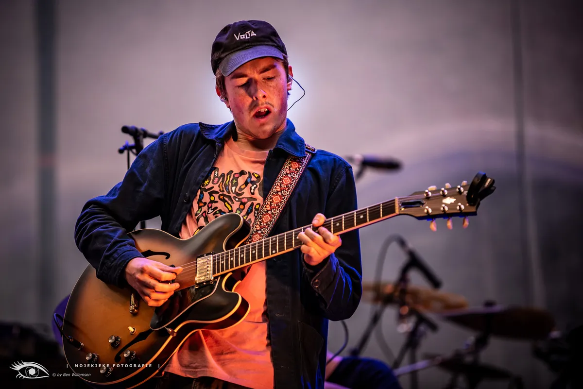 Zodra het podium omgebouwd wordt, komen er trouwe fans vooraan staan: de Vlaamse band Portland, genoemd naar de woonplaats van idool Elliott Smith, heeft ontroerend trouwe fans. Met een nieuwe zangeres/toetseniste, Nina Kortekaas, en hernieuwde krachten staat de band van Jente Pironet hier in Middelburg en het publiek hóúdt van Portland. Sinds eind juni zijn ze weer aan het toeren en ze stonden onder andere op Pukkelpop. Jente (32) kreeg namelijk in 2023 te horen dat hij een hersentumor heeft, waarvan hij nooit helemaal zal kunnen genezen. Hij is nu weer terug op het podium en hóé. Kleine, breekbare liedjes, zoals het melancholieke ‘Aftermath,’ en ‘She Really Means It’– een cover uit het programma ‘Liefde Voor Muziek.’ Maar ook het grotere gebaar wordt niet geschuwd, met zware basklanken, stevig drumwerk en scheurende gitaarsolo’s- sinds zes weken heeft Jente een Roadrunner gitaar. Portland biedt een geweldige dynamiek, met spannende breaks, meeslepende liedjes en een groot vocaal bereik van Pironet. Nu eens klinkt hij als een ouderwetse crooner, dan weer kan hij geweldig uithalen. ‘Portland, dappere vechter, top muzikant,’ houdt een trouwe fan een spandoek op. Het is duidelijk: er is veel liefde vanavond op het Abdijplein. Liefde en hoop, ondanks alles. “Door een festival als dit duurt de zomer voor eeuwig,” complimenteert Jente Pironet het Zeeland Nazomer Festival en het publiek. (tekst: Anneke Flikweert)