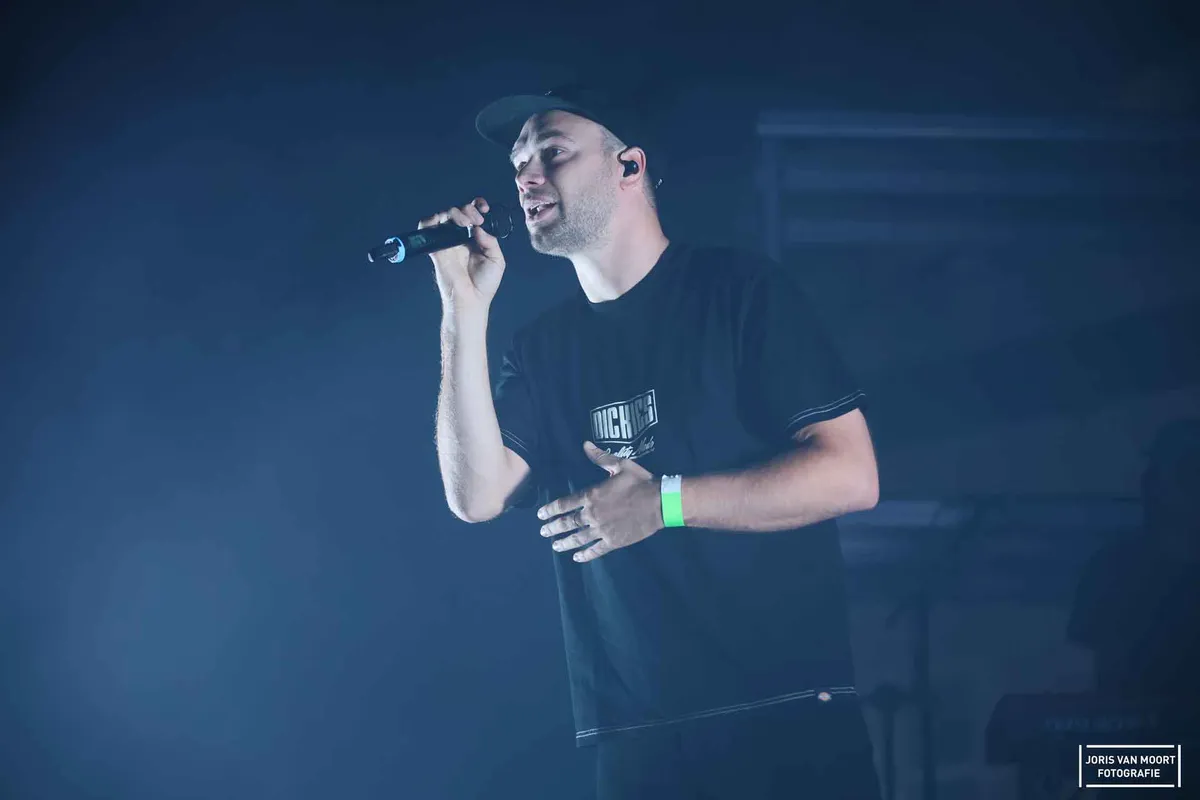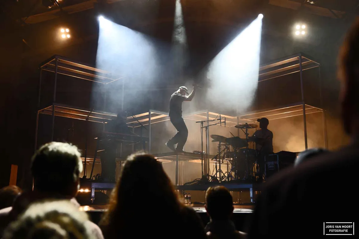 Op het podium een soort stellage, met twee muzikanten in het duister. Gejuich als de Vlaamse rapper en woordkunstenaar Brihang opduikt. Hij opent met ‘Acceptatie’- over het leven met kinderen. Via ‘Alles loopt anders’ gaat hij naar zijn nu-al-klassieker ‘Berg,’ over de weg vinden en grenzen verleggen. “Zijn er bergen in Zeeland?” vraag hij zich af. Het publiek, waaronder aardig wat kinderen, zingt woordelijk mee: “Berg op, berg af, altijd maar die berg op klimmen.” En ja hoor: daar gaat Brihang, hoog de stellingen in. Hij danst op het podium en het publiek klapt, maar dat is eigenlijk pas voor later, vertelt hij. Hij was op oesterjacht, omdat hij achter een vrachtwagen reed met “De zee op je bord.” Uiteindelijk bemachtigde hij bij de plaatselijke vishandel vijf oesters, waarvan twee goed. Middelburg is het beginpunt van zijn internationale tournee, lacht hij.