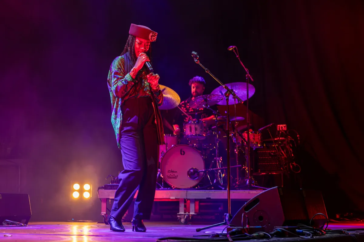 Puntjudith werkte afgelopen jaar aan een dubbelalbum en Middelburg kreeg de primeur met het eerste nummer, ook in deze bezetting met blazer/toetsenist Antonio Moreno Glazkov en Adriaan Stoop op drums. “Het gaat over hoop houden,” legt Judith Rijsenbrij uit: “Bijvoorbeeld bij al die nare socialmediaberichten die ons overspoelen.” Zware bassen vragen nadrukkelijk de aandacht, maar er is ook tijd voor parlando nummers, zoals in ‘Lawine,’ met een betoverende energie. Opgroeien, relaties, communicatie, dagelijkse irritaties: prachtige, gelaagde nummers waarin de loepzuivere stem van Judith tot haar recht komt. Nu eens ingetogen, dan weer uithalend. De crescendo met aanzwellend elektrogeweld is soms heel fors. Trompettist Antonio Moreno brengt nét die extra laag aan in het geheel. Met ‘Paradijs’ als uitsmijter is het plein ‘los’ en er wordt volop meegezongen en meegedanst.