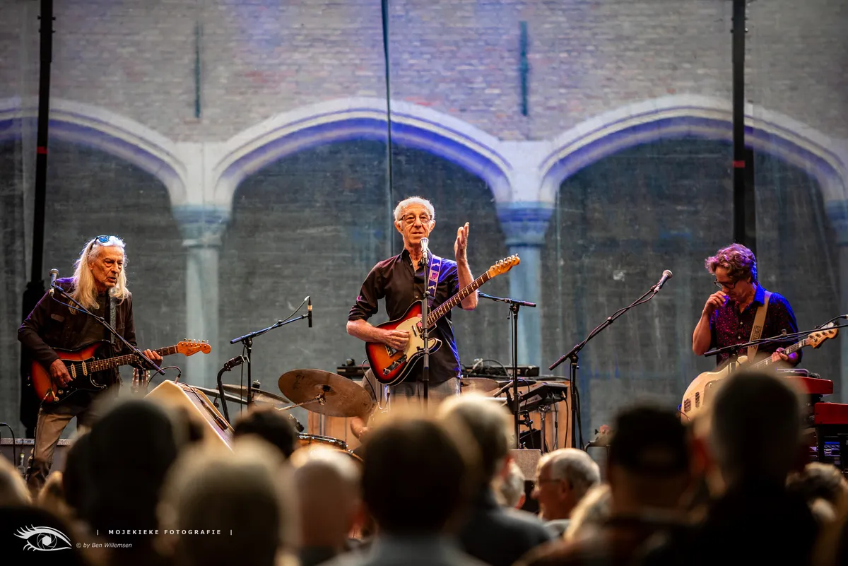 Het overhemd wordt opengeknoopt en achterstevoren aangetrokken. “Het is nu pauze dus moeten we de vestimentaire aanpassen. Wij blijven op het podium.” Via ‘Haile Selassie’ en ‘Omdat ik van je hou’ gaat het weer naar wat ruiger werk. De band heeft onderling binnenpretjes en Raymond improviseert graag. Klassieker ‘Zjoske’ komt langs en het ontroerende ‘Twee meisjes,’ waarmee hij het publiek inpakt. Vergelijkbaar even later ‘Verlaten gebouw’ (2023): een nieuwe melancholische klassieker in de dop. Met ‘Vlaanderen Boven’ zingen ook de Zeeuwen voluit mee, al gaan de aanwezige Vlamingen het hardst uit hun dak. En via meesterlijke gitaarsolo’s, gillende kopstem, bluesy nummers en prachtige jazz in het deels instrumentale ‘Brussels by NIght’ gaan we dan eindelijk naar ‘Meisjes,’ gedragen door het publiek. “Het is licht betoverend ook vanwege al die snoeren met lampjes,” vat de zanger dit moment samen. En natuurlijk wordt de band teruggeklapt en – gefloten voor een toegift. Het wordt een feest, met onder andere ‘Liefde voor muziek’ waarbij het plein losgaat. En die laatste, ultieme toon die Raymond aan wilde slaan op zijn keyboard, met zijn krukje? Die toets is nu helaas gebroken. Foutje. (Tekst: Anneke Flikweert)