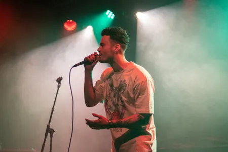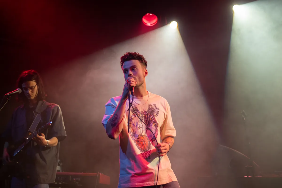 Wie het combineren van pop en hiphop een stuk beter onder de knie heeft is de 24-jarige Zeno. Het bewijs daarvoor levert hij meteen in het eerste nummer van zijn set; ‘Favoriete Waste of Time’ trapt af met akoestische gitaar en dromerige vocalen maar maken later ruimte voor trapdrums en rap. De rapper heeft er zin in vandaag: "Het is D-day voor mij, ben blij om mijn nieuwe muziek te delen met jullie en wat ik wil zeggen is: voel je comfortabel om te dansen of om stil te staan en te genieten van de muziek, wat je wilt. Voel je gewoon comfortabel om jezelf te zijn." We horen vanavond niet alleen muziek van het nieuwe album, ook oude nummers zoals ‘Beste Versie Van Mezelf’ en ‘Dichtbij’ krijgen een plekje in de set. Er is meer dan voldoende variatie te vinden in de nummers van Zeno, zonder dat de rode draad in zijn muziek verloren gaat. Het ene moment luistert het publiek aandachtig en stil naar de teksten in het openhartige ‘Ik Hoop Dat Je Dit Luistert’, het andere moment wordt er gedanst op het wavy ‘Zeven Zeeen’ en de dancebeats in ‘Blame iT On The XtC’. Zowel zijn zang als rap klinken clean vanavond, maar enigszins gespannen is Zeno over het brengen van ‘Vervloekt’: ‘Hij gaat raar hoog toch, maar let’s go.’ Zenuwen die nergens voor nodig blijken te zijn, want ook die hoge noten worden, weliswaar met (minimale) autotune, gewoon gehaald.