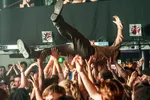 Maar ho is ff, zijn we nou binnen 10 minuten in een moshpit belandt? Voor wie denkt naar een rustige hiphopact te gaan, wordt toch vriendelijk de beukende mensenmassa ingezogen. Niks een beetje bouncen op de beat. De corna’s van pinkjes en wijsvingers in de lucht laten meteen zien dat lovers van heavy metal, rock en rap hier allemaal met elkaar in de zaal staan
