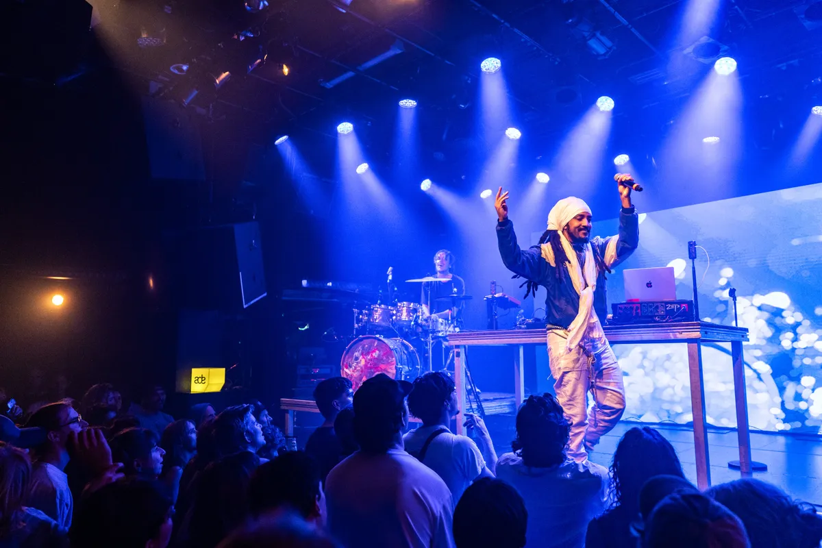 “Wie is er klaar voor ADE?” zonder het antwoord af te wachten gaat het technonummer Renegade Master aan. Nou en of ze klaar zijn voor het elektronische dansfeest hier in de Melkweg. De blits steelt Pink Oculus als ze ergens daarna met haar snelle zonnebril komt rappen waarbij ZEP hofleverancier van haar beats is. Nog net niet hijgend staat ze op het toneel, ze was nog maar zo’n 5 minuutjes daarvoor aangekomen met de Uber vanaf Schiphol. Een gluiperige rust die ze lijkt te brengen verandert maar al te snel in keihard jammen. Ook Peter Somuah wordt daarna met zijn trompet ondersteund met een tikkend ritme. Zodra de zaal eindelijk adem kan halen tussen de moshpits door, komt Siimbiie (die “hij nog maar een paar weken kent” en toch al uitnodigt als act op zijn feest) de beukertjes in de zaal ook nog met zijn harde raps verblijden. Of verserieuzen, want elk bar die de rapper eruit knalt wordt door ZEP verdriedubbeltvoudigt de zaal ingeslingerd.