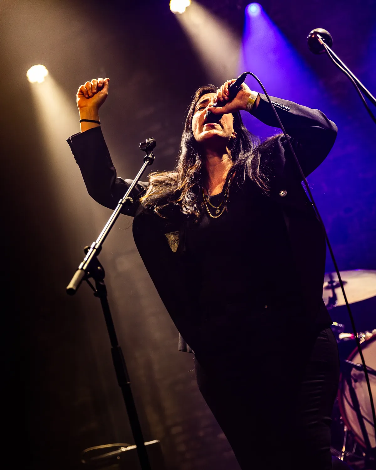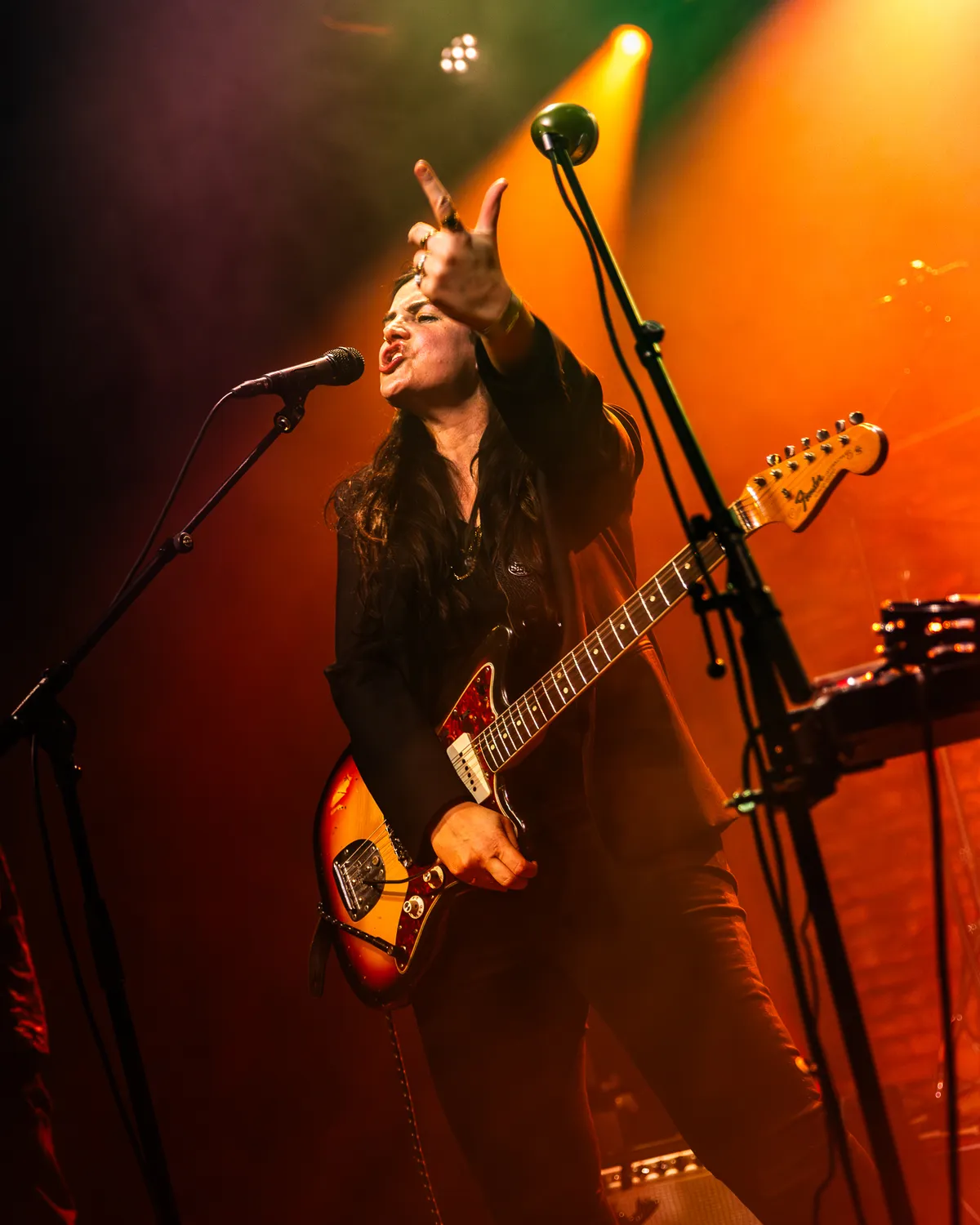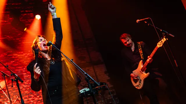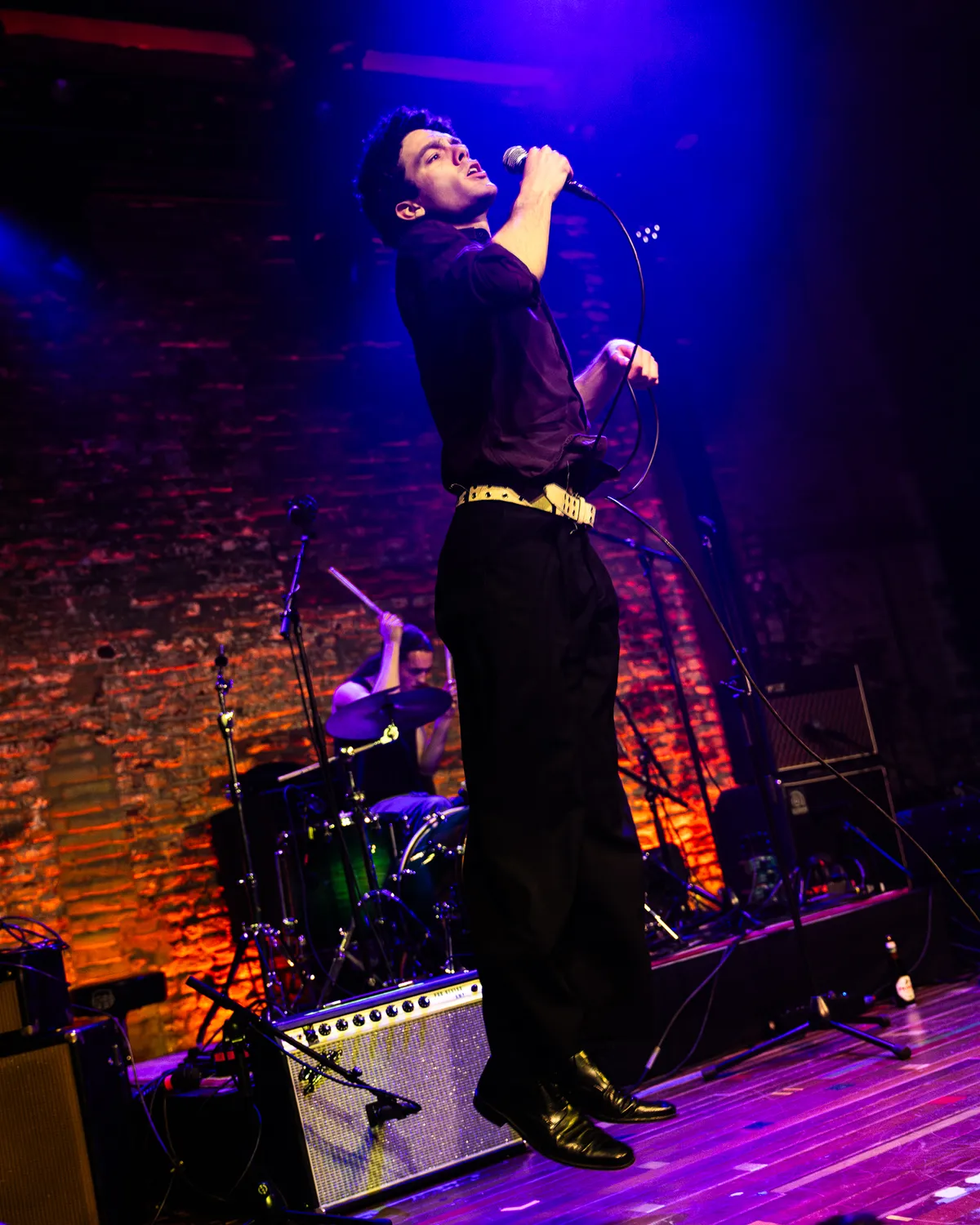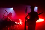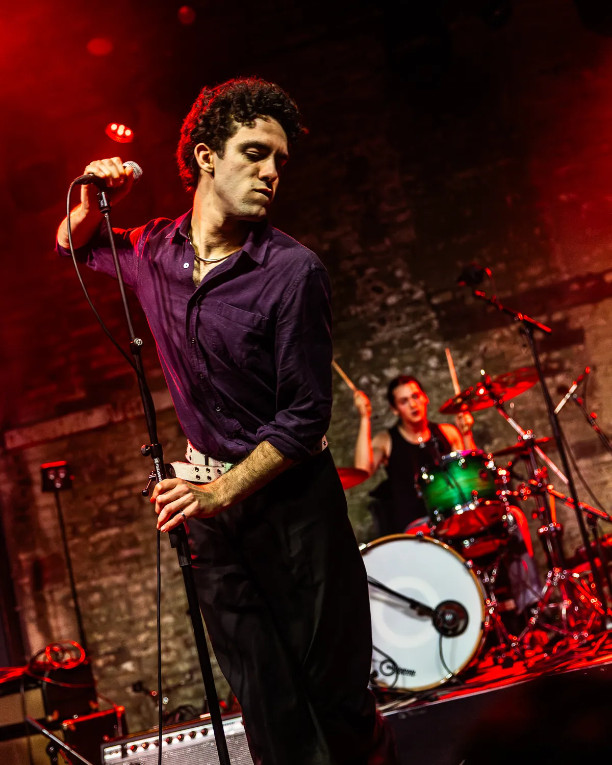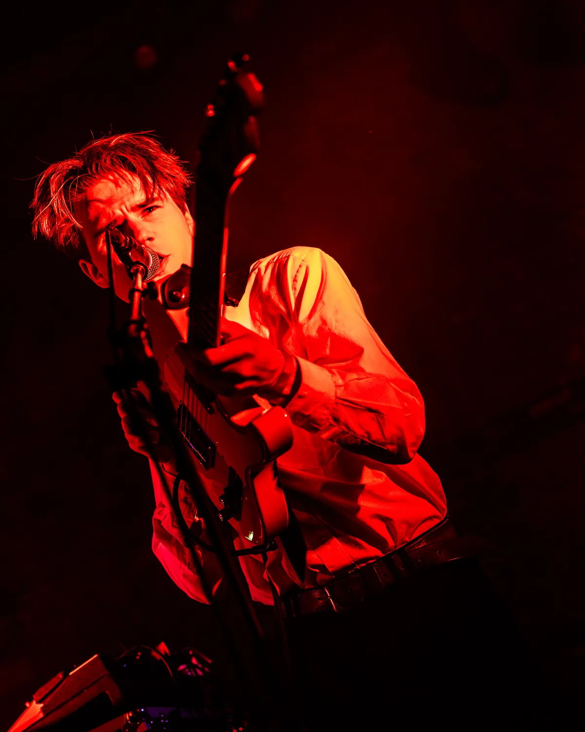 “Black out, black out, oh shit, best intro ever” roept Michiel Ritzen, de ene helft van het Belgische duo Affaire. De band stond in januari 2023 al eerder op 043, samen met Meltheads en Marathon. En waar het project destijds nog wat te jong was om een half uur echt te blijven boeien, worden we vanavond 40 minuten lang meegezogen in een optreden waar vette intro’s en elektronische beats de zaal langzaam aan het bewegen krijgen. De nummers worden naadloos achter elkaar doorgespeeld waarbij vooral opvalt dat Ritzen en Nick Caers (de andere helft van het duo, drummer van The Haunted Youth) elkaar moeiteloos aanvoelen. Waar Caers op de achtergrond in alle vrijheid achter de knoppen mag draaien op synths en drumcomputer en zijn hoekige maar groovy beats op ons afvuurt, daar zorgt Ritzen met zijn gitaar om de nek voor wat rockinvloeden, zoals in het nummer ‘Mountain Energy’ met die hypnotiserende gitaarriff.