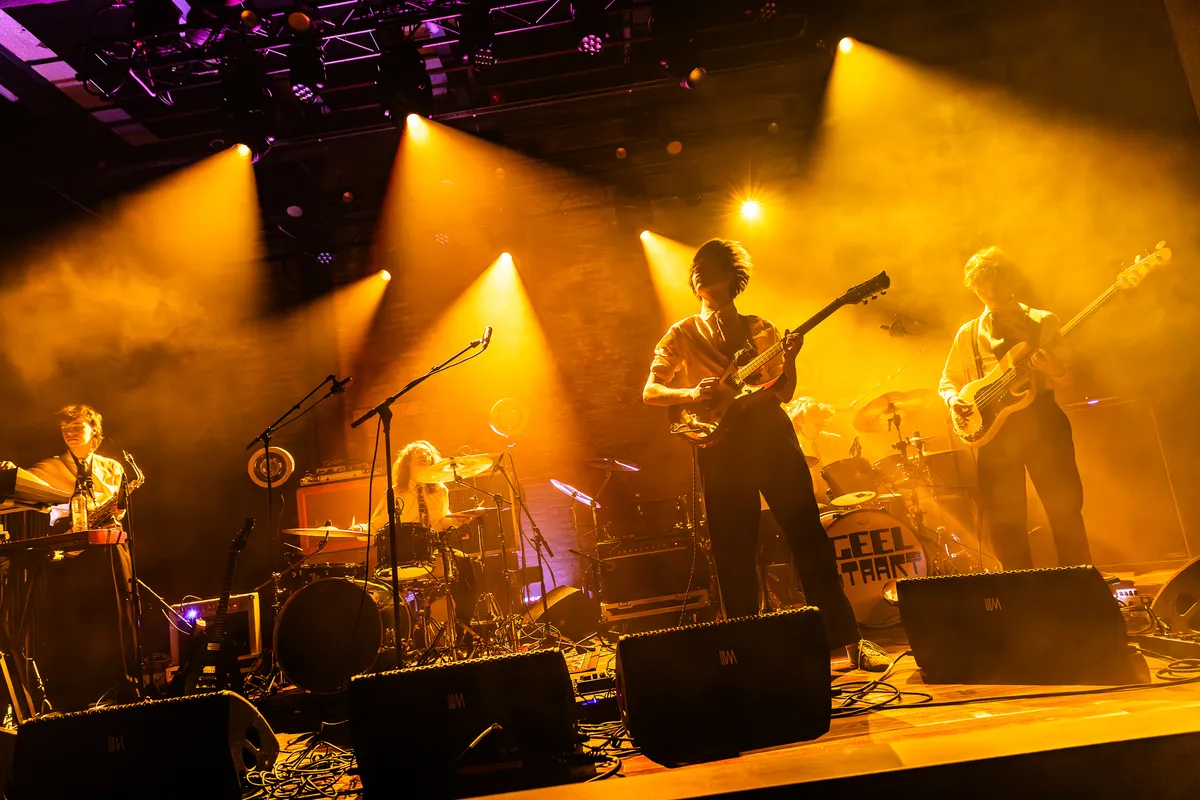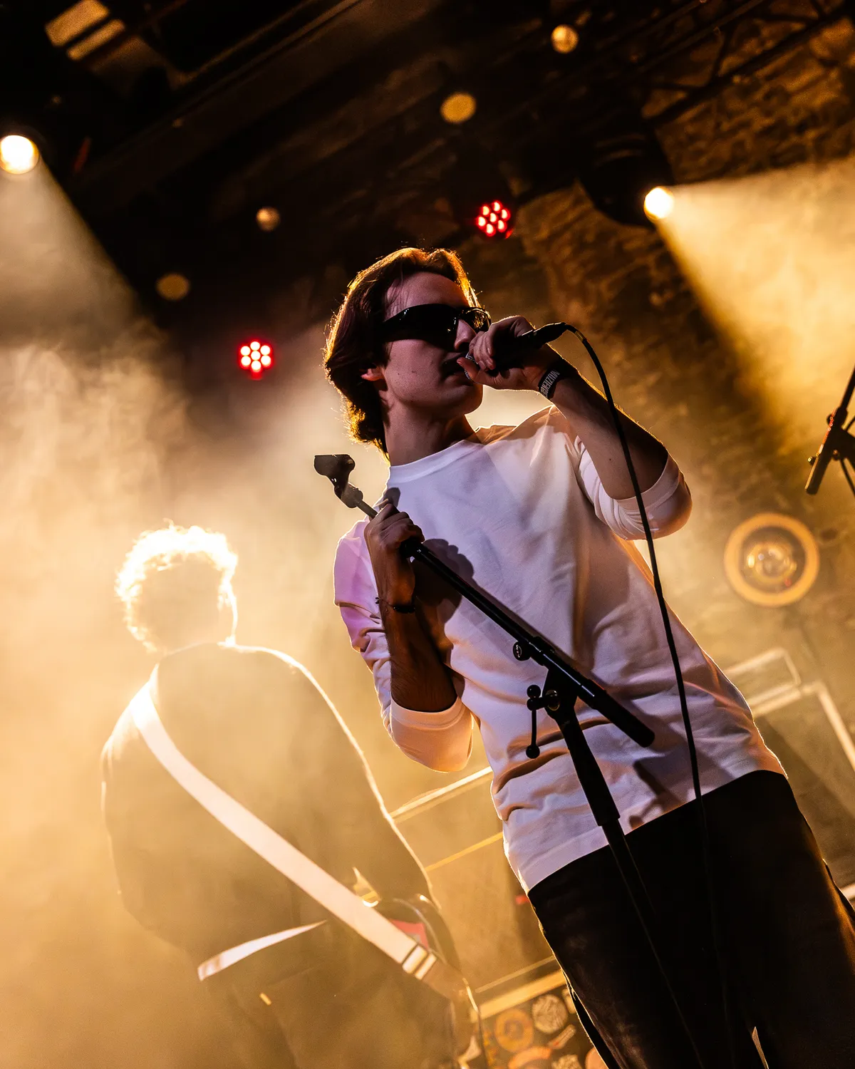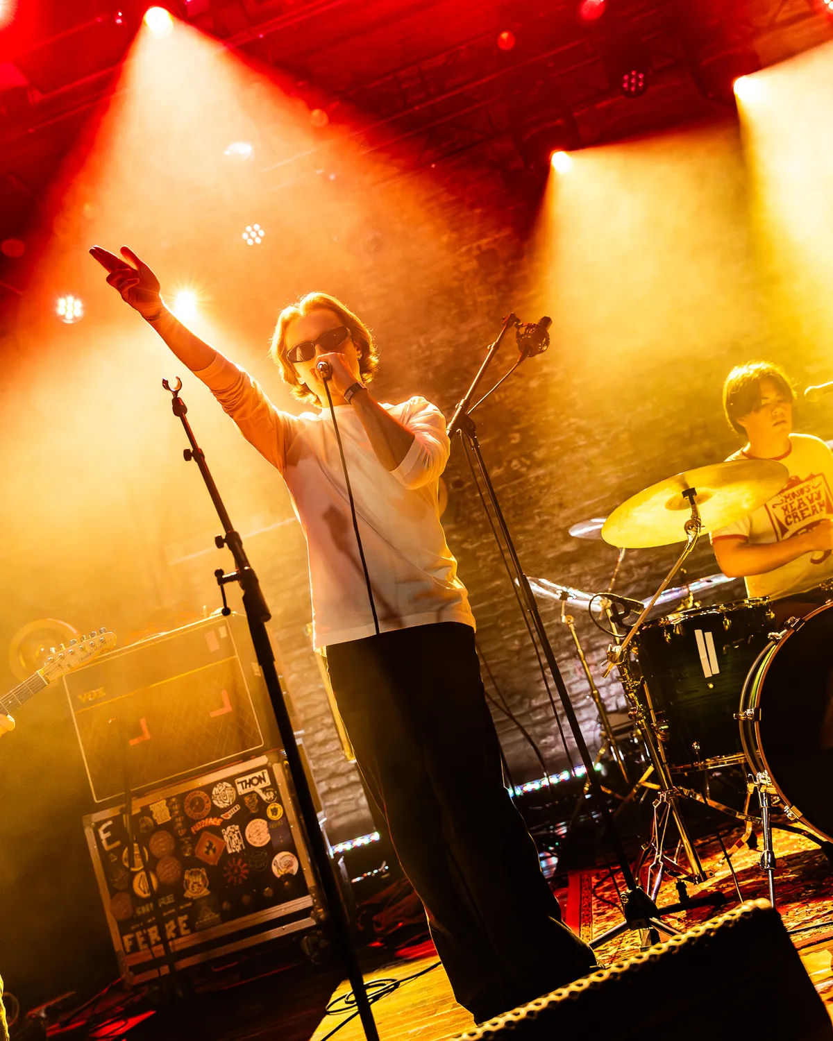 Waar STRYKE de avond enigszins voorzichtig in beweging brengt, trekt Grote Geelstaart die deur vervolgens met kracht open. De mannen uit Zeeland verschijnen strak in het pak: witte overhemden, stropdassen, keurige kapsels. Het contrast met wat volgt is heel groot. Ze openen met ‘Muurvast’ en salvo’s van drums en gitaren die de zaal wakker schudden. Vervormde stemmetjes en vreemde soundscapes dwarrelen door de ruimte, terwijl jazzy drums en aritmische gitaren elkaar in de weg lijken te zitten. Alsof dat nog niet genoeg is, voegt zanger en gitarist Luuk Bosma er een merkwaardig dansje aan toe. De toon is gezet: dit wordt geen keurige set, maar gecontroleerde chaos á la Black Midi en soortgelijke bands.