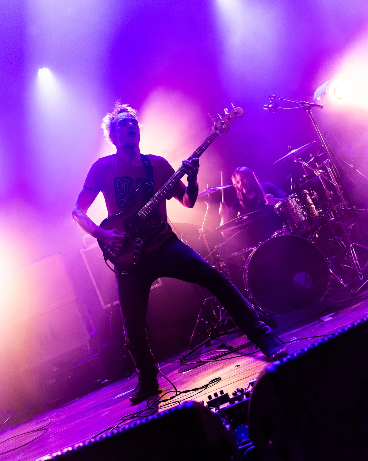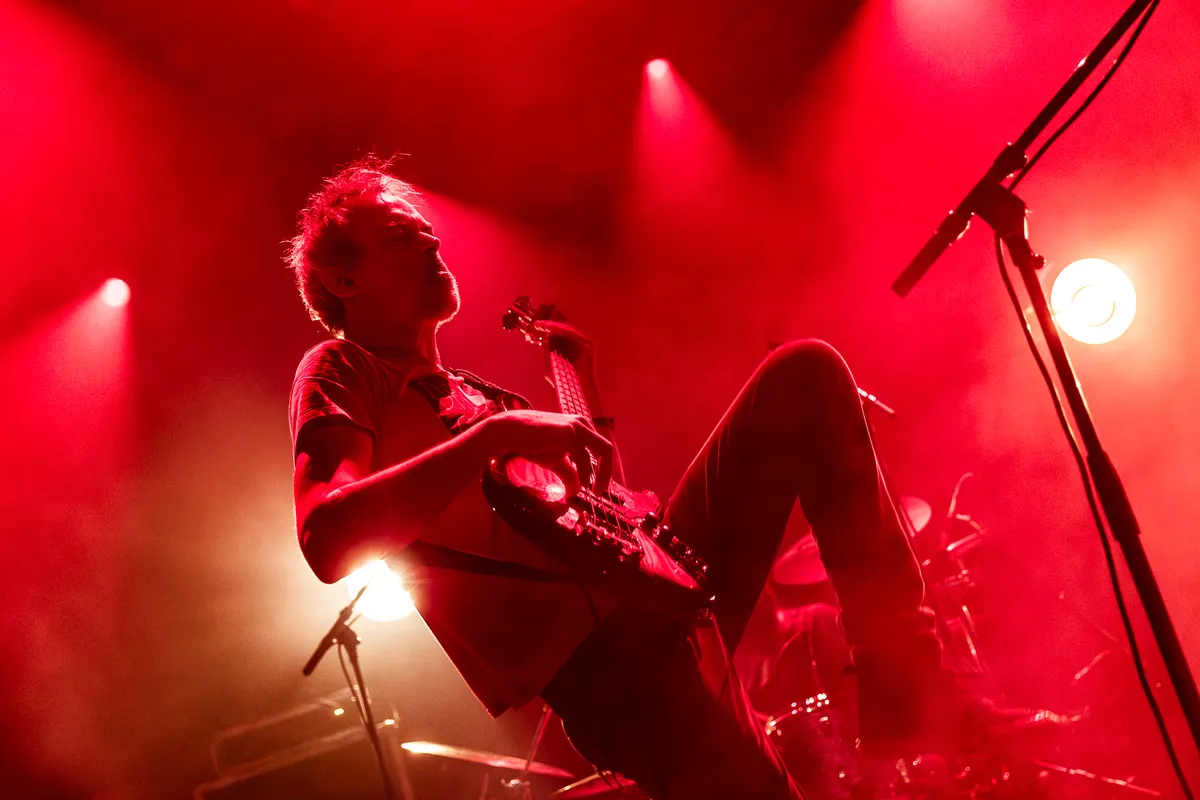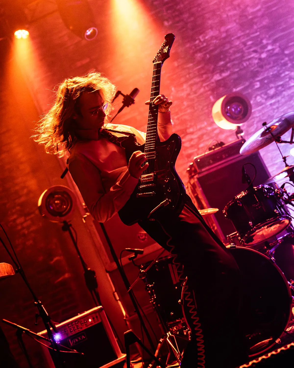 Waar STRYKE de avond enigszins voorzichtig in beweging brengt, trekt Grote Geelstaart die deur vervolgens met kracht open. De mannen uit Zeeland verschijnen strak in het pak: witte overhemden, stropdassen, keurige kapsels. Het contrast met wat volgt is heel groot. Ze openen met ‘Muurvast’ en salvo’s van drums en gitaren die de zaal wakker schudden. Vervormde stemmetjes en vreemde soundscapes dwarrelen door de ruimte, terwijl jazzy drums en aritmische gitaren elkaar in de weg lijken te zitten. Alsof dat nog niet genoeg is, voegt zanger en gitarist Luuk Bosma er een merkwaardig dansje aan toe. De toon is gezet: dit wordt geen keurige set, maar gecontroleerde chaos á la Black Midi en soortgelijke bands.