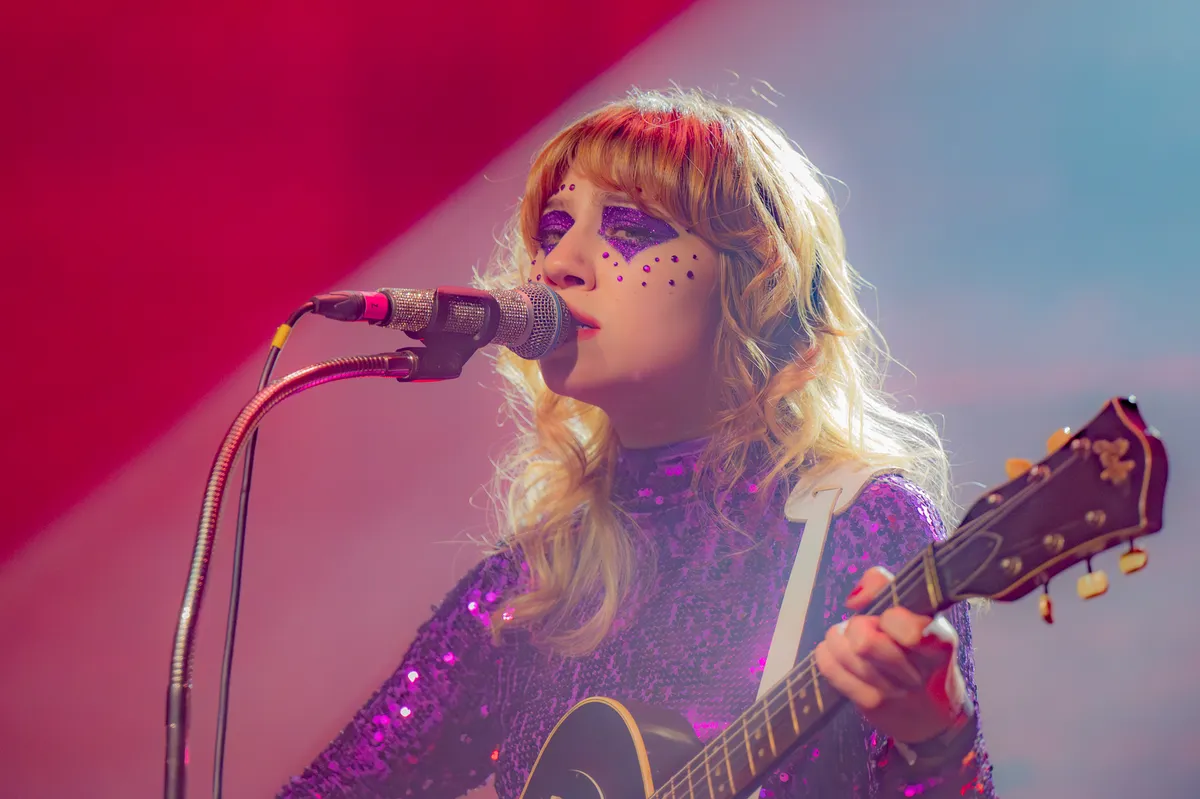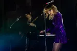 Als alles wordt klaargezet voor de afsluiter van de avond, waan je je al gauw in totaal andere sferen. Het mag snel duidelijk zijn dat Suzan Köcher’s Suprafon wel van wat glam houdt. Het podium wordt gevuld met glitterende blouses, leren broeken en een fantastisch glinsterende paarse jurk - zelfs de microfoon mag er niet voor onderdoen en is bezaaid met glittersteentjes.