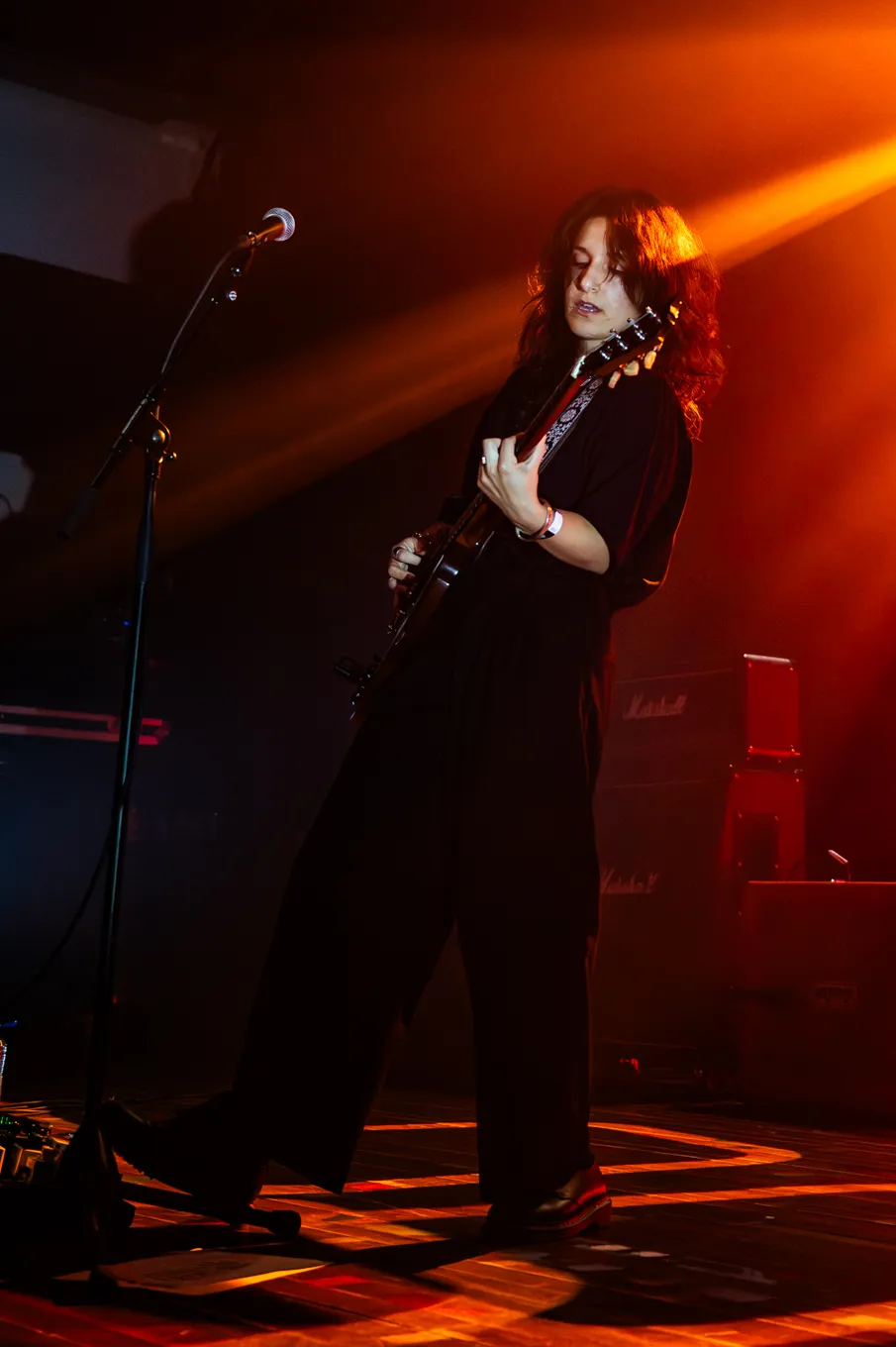 De set die we vanavond horen is goed opgebouwd met 'The Wife' als absoluut hoogtepunt. Ioana weet in dit nummer een ijzingwekkende sfeer neer te zetten met zwaar aangezette lange gitaaruithalen die op het juiste moment worden afgewisseld met rustigere passages. Dit alles bijgestaan door een harde en repetitieve drumpartij waardoor we volledig in beslag worden genomen door de muziek. Haar spoken-word zang ontlaadt op het einde van het nummer zelfs in een felle stem waardoor de lading van het nummer nog meer tot de verbeelding spreekt. Waar een nummer als 'Bad Dream' dan weer meer dromerig klinkt, laat ze haar gitaar in 'Doll House' vanavond werken als een sloopkogel – rauw, woest, en vastberaden – die zich een weg baant recht op je af, klaar om alles te verpulveren. Maar net op het moment dat de inslag onvermijdelijk lijkt, houdt haar fluweelzachte stem dit weer tegen. En dat gebeurt bij meer nummers die ze vanavond speelt, wat haar muziek zo spannend maakt. Het is muziek die je niet alleen hoort, maar die je ook ondergaat. Een boeiende en bij vlagen broeierige set met voldoende afwisseling die ons snel doet verlangen naar volgend jaar zomer wanneer het nieuwe album zal uitkomen. Tot die tijd hopen we haar zeker live nog een aantal keren te mogen zien.