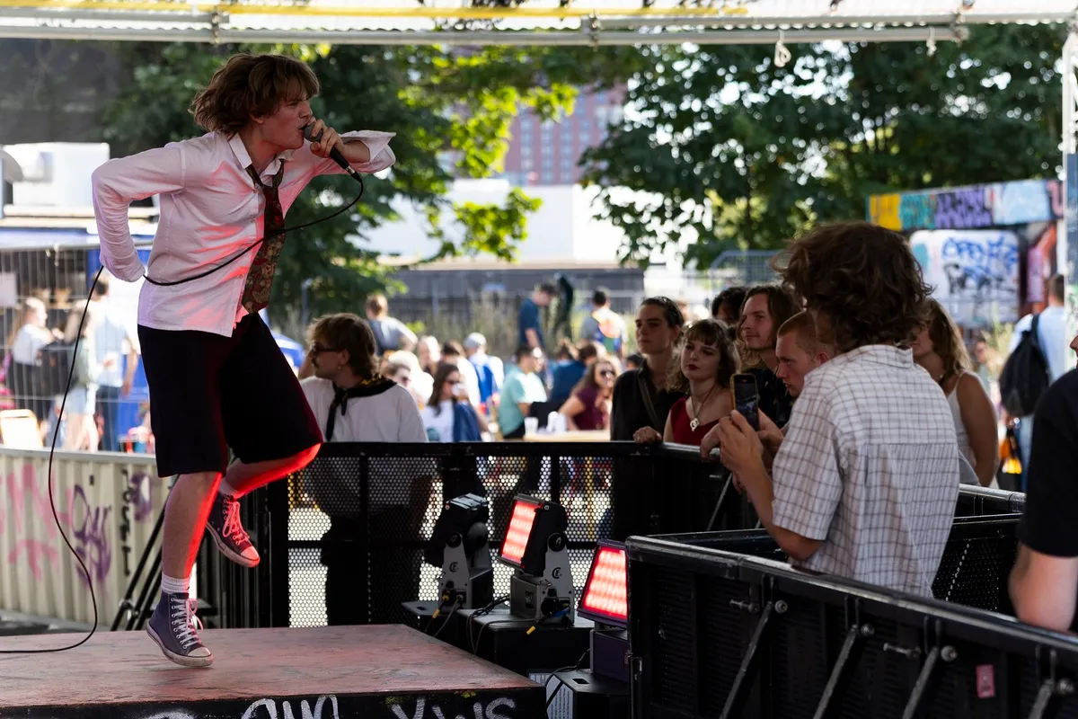 Tussen de driewielers, voetballen en stepjes door, vindt ondertussen op Beton-T de rest van de muziekprogrammering plaats. Met de Utrechtse postpunkband FIT als eerste act van het podium staat er direct een bulk energie en intensiteit. FIT is van de programmering ook gelijk de meest uitdagende band, zowel in sound als performance; stuiterend over het podium maakt zanger Ide Ploeg het haast onmogelijk om als bezoeker te blijven staan en toe te kijken. De programmering sluit vervolgens mooi aan bij de warmer wordende middag; Cocobolo en Don Melody Club spelen fijne funk die past bij een lome zondagmiddag.