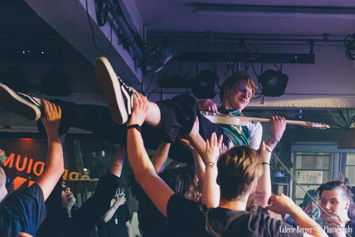 Dan is het tijd voor ZOEKHETUITMAN. De vier jonge, boze en energieke punkers laten in Poppodium Phoenix zien dat ze vooral ontzettend veel plezier hebben. Maar tussen het geschreeuw en de opgejaagde gitaren door legt de band een spiegel voor aan de maatschappij met leuzen zoals “zou jij anders zijn als jij aan de top staat?” en “ik ga naar demonstraties, maar alleen als het uitkomt.” Het jonge publiek gaat gretig mee in het enthousiasme van de band. Zanger Jullian wordt de lucht in getild, en even later vliegt gitarist Tomas erachteraan, gitaar nog steeds om zijn nek. Zelfs liggend op zijn rug weet hij alles verrassend strak te houden.