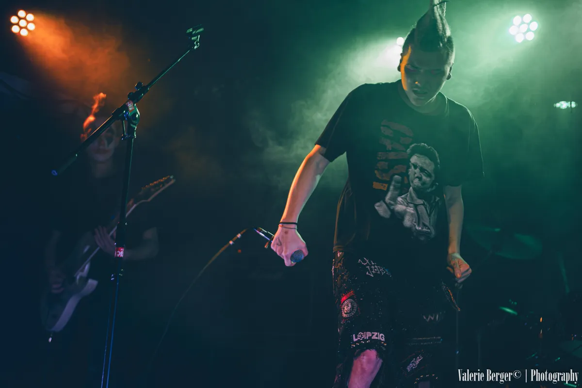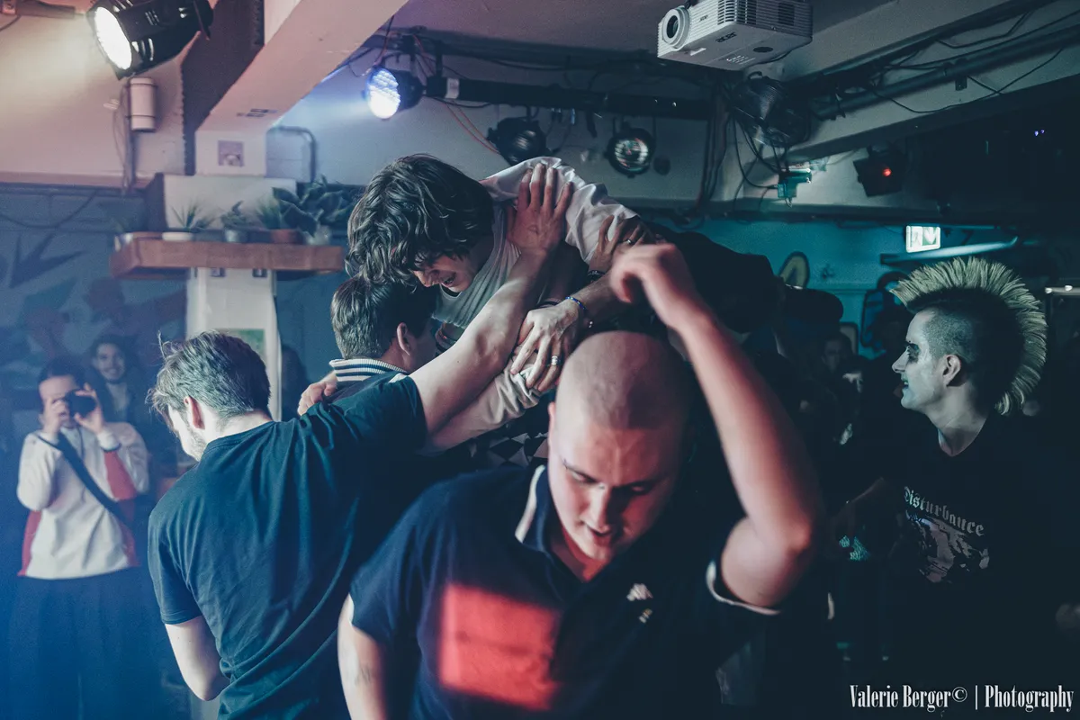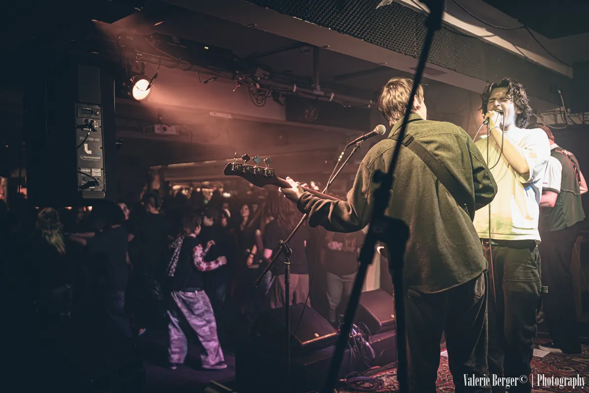Wanneer de jongens losgaan, voelt het alsof activistische poëzie met volle kracht je strot in wordt geduwd, en dat is precies de bedoeling. “Punk is wat ik zeg dat punk is!” klinkt het vanaf het podium. Volgens de band betekent dat vooral: je bek opentrekken. In nummers als GOOI DE GRENZEN OPEN en DE PIRAMIDE VAN GEWELD nemen ze het op voor immigranten en spreken zich uit tegen femicide. “Mannen, spreek andere mannen aan!” wordt er geschreeuwd. Achterin jaagt de drummer Patton het tempo op alsof hij de moshpit probeert in te halen, zijn armen bewegen soms nog sneller dan de lichamen voor het podium. En zodra de bassist Ceder een tikje harder wordt gezet, verandert het ritme van de zaal. Alsof iemand even aan je hartslagknop draait.
