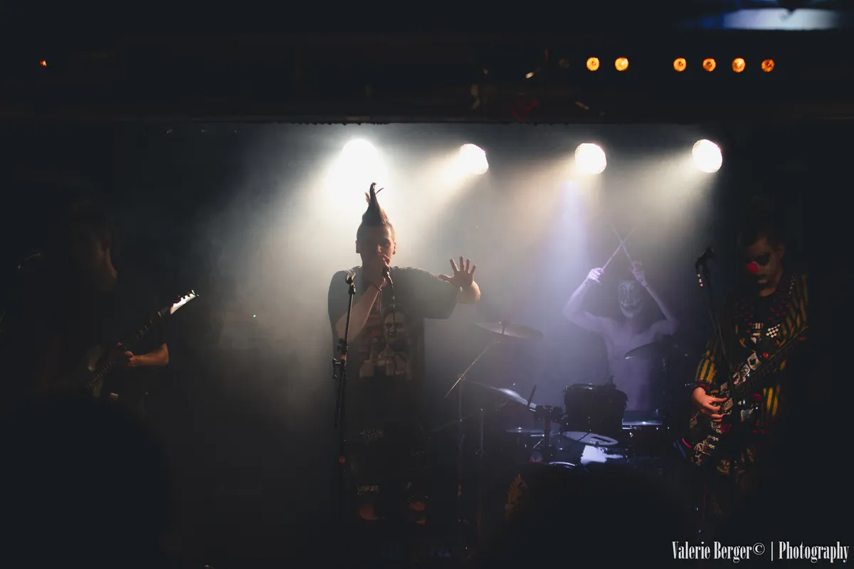 Voordat ZOEKHETUITMAN het podium opstormt, is het eerst de beurt aan Mister Merry Men. De band oogt als een punkkarikatuur die tot leven is gekomen: hanenkammen in verschillende kleuren, gezichten vol schmink en een zanger met een stem die eerder uit de metalscene lijkt te komen wegens zijn semigruntende zang. Het is hun allereerste optreden ooit, maar dat houdt het publiek niet tegen om meteen een (nog vrij brave) moshpit te beginnen. Halverwege kijkt de zanger even het publiek in: “Volgens mij is mijn tong aan het bloeden… maar fuck it!” Voor het laatste nummer moet nog snel een kapot geschreeuwde microfoon worden vervangen, en zo is hun eerste optreden een feit.