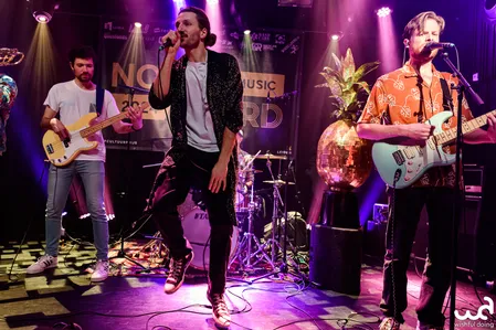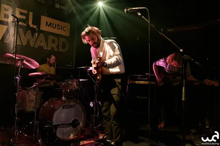 In de uitverkochte Kleine Zaal, met in het begin nog genoeg bewegingsruimte, staan andere mede-deelnemers als Salamander en mays in het publiek. Loting bepaalde dat Pineapple Road als eerste mag. Volgens het versleten spreekwoord zou de eerste klap een daalder waard zijn. Het nadeel van er als eerste op het podium staan, is alleen dat het publiek dan nog onwennig, nuchter en afstandelijk is. Dit zijn gelukkig publieksspelers: vanaf het eerste nummer weten ze het publiek mee te laten dansen op hun poppy indierock, wat een eerste act zelden lukt. Bij het tweede nummer ‘The Beach’ springt frontman Jan het publiek in en maakt meedansend contact met de toeschouwers. Pineapple Road was al sterk in de derde voorronde en is qua performance nu nog beter. Wie weet zijn ze bevrijd door het succes van het bereiken van de halve finale. Het kan natuurlijk ook liggen aan een andere balans in hun set, want de nummervolgorde is in vergelijking met de voorronde behoorlijk door elkaar geschud. De laatste twee nummers, ‘Is This What You Wanted’ en ‘African Lodge’, verschijnen er op het toch al volle podium nog drie blazers. Die Afrikaanse blokhut is de afsluitende klaroenstoot. Onder toeziend oog van een enorme goudkleurige ananas, die als afgodsbeeld op het podium staat, zijn onze diesels in twintig minuten helemaal warmgedraaid.
