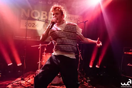sjoerdson oogt een beetje braver als hij in sweatervest het podium op komt. Hebben we Napoleon Dynamite ingeruild voor Ted Lasso? De liefelijke uitvoering van 'wasjemening' doet denken van wel, als het botte lied onder de zachte belichting van een randje ontdaan wordt. Er zitten veel Duitse woordspelingen in voor diegenen die het vak niet uit generationeel trauma hebben laten vallen. Ook met 'chicken chicken pussy bitch' komen we van een warme kermis thuis met een publiek dat het refrein uit het hoofd kent. Dan gaat hij over op de mimiek van een standupkomiek, en sjoerdson's gevatte teksten zouden zo in een set in een comedyclub passen.