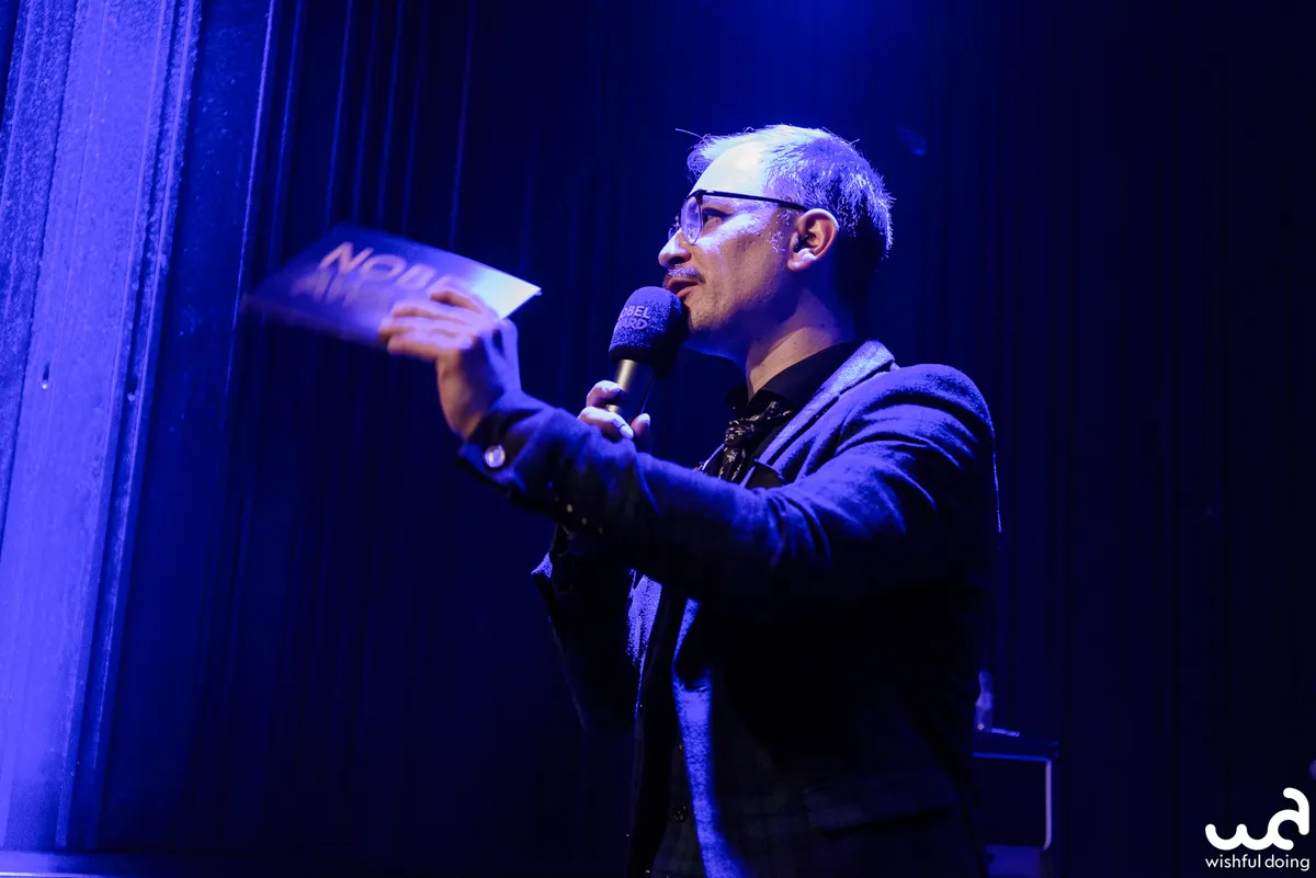 Ook een ander project van de artiest, APPLEMOOSE, komt even om de hoek kijken met het nummer 'i will endure', dat iets minder energie heeft in een toch al nerveus ogend optreden. De zin is nog niet opgeschreven of hij gooit er een hattrick tegenaan: een sprong in de spontaan ontstante pit tijdens een pingponghit, een track over hoe het te laten is waarbij lichaam tekst vertolkt in de vorm van panisch geijsbeer, en 'het kenmerkende aspecten lied', een virale sensatie over de geschiedenis waar Stille Willem stil van zou worden. Tussendoor ook nog een gedichtje waarbij twee dames het podium op komen om aan weerszijden in kleermakerszit een zengevoel te geven, maar de sterke terugkomst zorgt voor een ietwat ongebalanceerde performance.