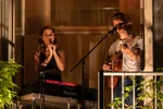 Het begint schemerig te worden als we naar de laatste locatie lopen aan de Kattenlaan waar Sam & Julia de avond zullen afsluiten. De tuin is een stuk kleiner dan de vorige maar ziet er sfeervol en knus uit. Sam & Julia spelen op de veranda van het pand op de eerste verdieping. De set begint voortvarend met ‘Crying at the zoo’ afkomstig van het volgend jaar te verschijnen nieuwe album. Het nummer wordt ook na de zomer uitgebracht als nieuwe single.