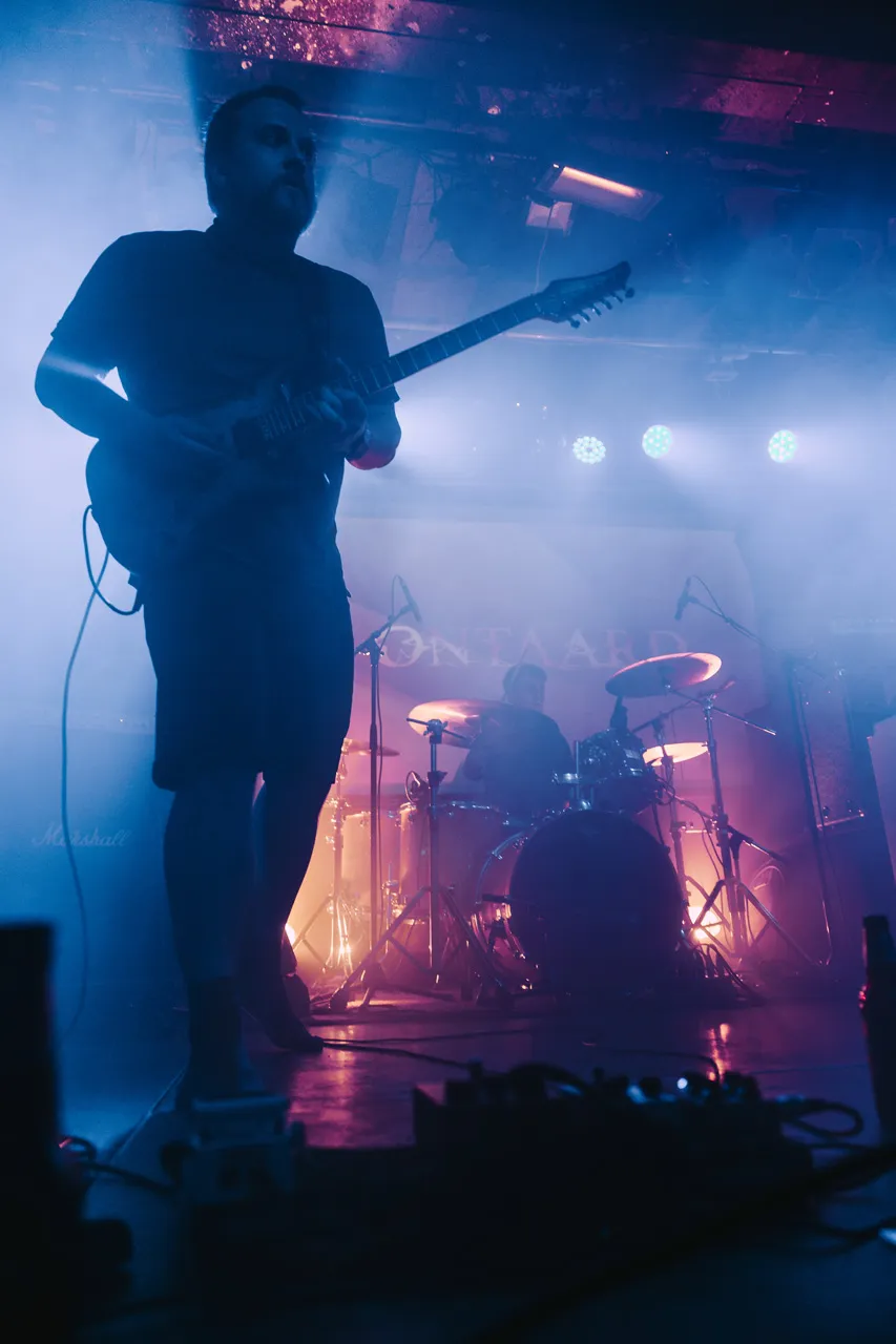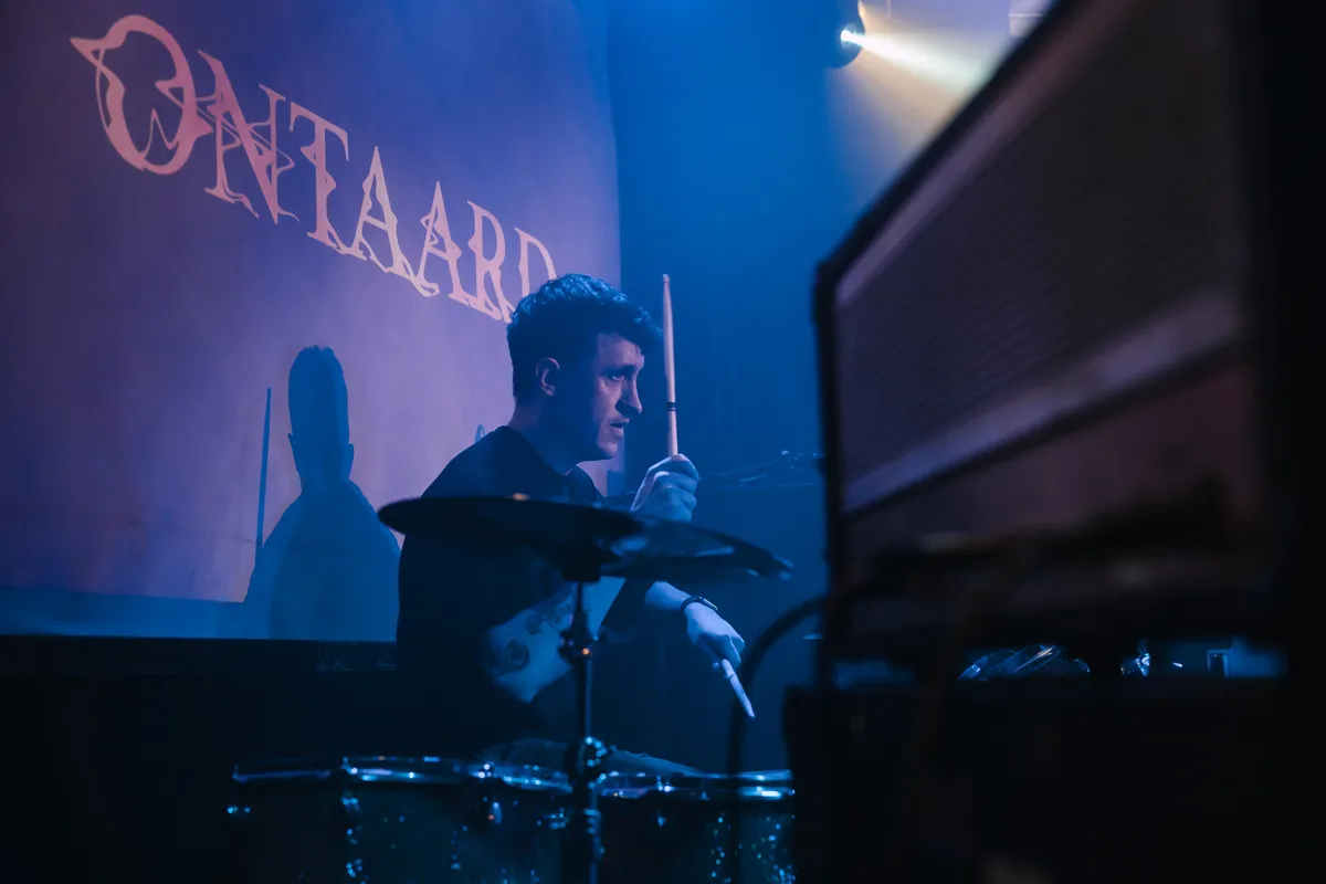 Op een avond waar genres telkens door elkaar heen lopen is Ontaard een passende afsluiter. In post-metal, het genre van de band, lopen bij uitstek allerlei stijlen door elkaar heen. Zo hoor je bij Ontaard invloeden uit black metal, sludge, post-rock en shoegaze, en haalt de band zelfs wel eens invloeden van buiten de muziek aan, zoals Franz Kafka en Caspar David Friedrich. Zangeres Shira van der Wouden heeft hun muziek in een interview eens ‘post-traumatische post-metal’ genoemd, wat meer op de thema’s waar de band over zingt dan op hun geluid zelf lijkt te wijzen. En daar zit ook zeker wat in. Zodra de band begint te spelen voel je de emotie die de band in de muziek steekt. Hoge, scherpe gitaarklanken steken uit boven de lange, behoorlijk zware bas en drums, om vervolgens volledig de zwaarte in te storten. Shira van der Wouden schreeuwt op overweldigende wijze haar teksten uit, maar hun nummers bevatten ook cleane zang en spoken word-achtige passages. Daardoor komt het geheel nog harder aan. Tussen de nummers door vertelt de zangeres over de traumatische ervaringen die achter de teksten schuilgaan. Het zijn verhalen die pijnlijk zijn om aan te horen: over niet geloofd worden na een aanranding, mensen in machtsposities die misbruik van je maken, de schuld die onterecht bij jou gelegd wordt. De muziek buldert over de zaal heen, zowel in de hardheid en zwaarte van de muziek zelf, als in de emotionele lading die het over het publiek uitgestort. Het publiek mosht niet zoals bij de vorige bands, maar je merkt dat de hele zaal minstens net zo in de muziek opgaat. Ontaard is een band waarvan je hoopt nog veel meer te gaan horen.