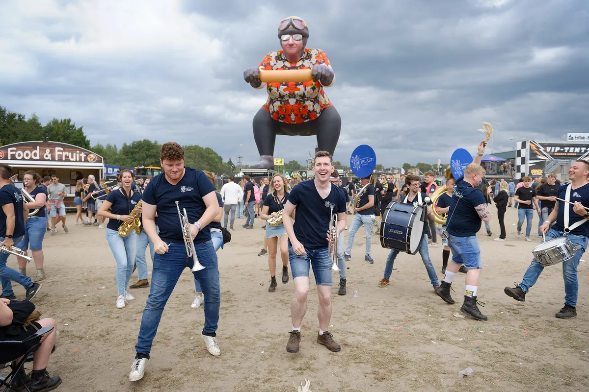 Tijdens onze tocht naar het hoofdpodium treedt de belangrijkste regel van de Zwarte Cross in werking: plan je dag niet te strak in, dan maak je het meeste mee. Voor je het weet wordt de weg geblokkeerd door mensen die zijn gaan touwtjespringen of dwaal je rond en beland je bij een heerlijke brass band (Valvetronic, in ons geval). Er lijkt altijd ergens een stuntshow aan de gang te zijn en anders is er wel iemand – we noemen geen namen – die haar ei kwijt wil over de show van Bökkers en haar voorliefde voor FeestDJ Ruud (“ik ben zelfs toentertijd op zijn afscheidsshow geweest!”).