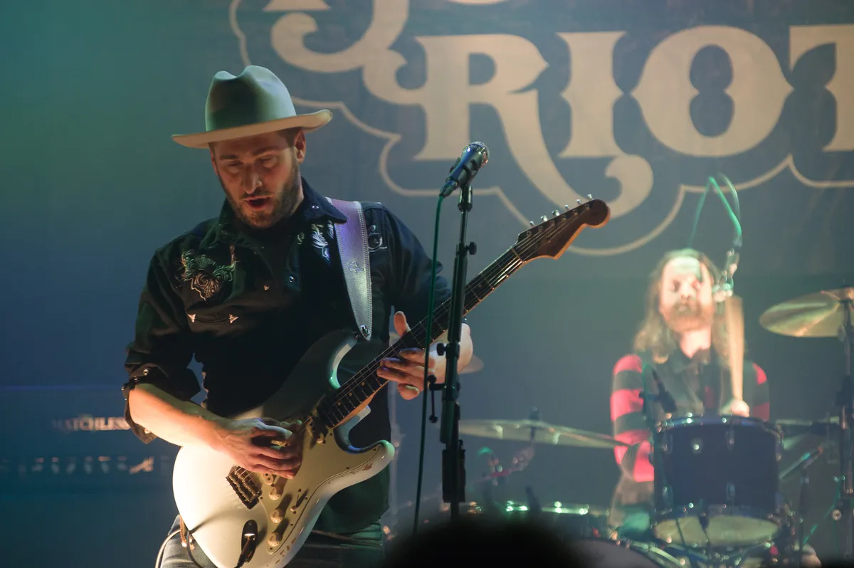 Doet dat er toe? Nee, eigenlijk niet. Want de vier mannen weten hoe je een feestje bouwt. Met de fans en voor de fans. En dat feestje komt naarmate de avond vordert steeds meer op gang waarbij oude nummers afgewisseld worden met nieuw werk. De nieuwe nummers zoals ‘Speaking In Tongues’,’You Lost’ en ‘Medicine’ laten een toegankelijker geluid horen dan op III: Indigo Blues dat beschouwelijker en minder straight in your face rock ’n roll was dan Black Bottle Riots eerste twee platen. Wellicht heeft de keuze om nieuw materiaal eerst live te ‘testen’ voordat de band de studio ingaat voor een ‘losser’ geluid gezorgd. Het klinkt in ieder geval uitstekend en doet verlangen naar het volgende album van de vier mannen.