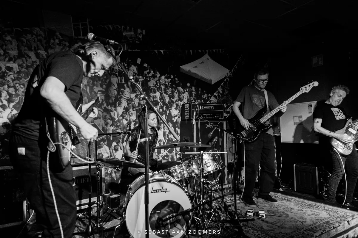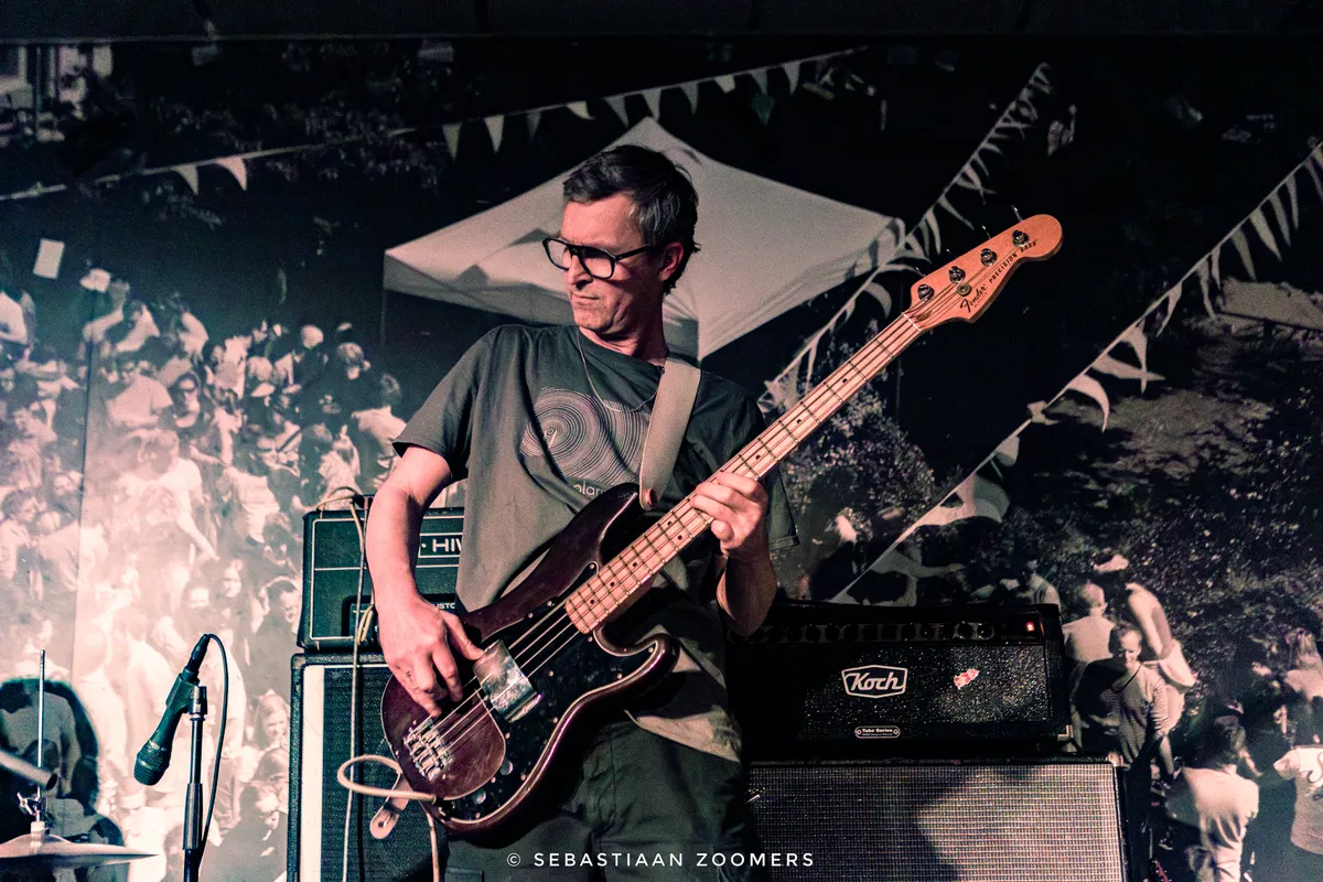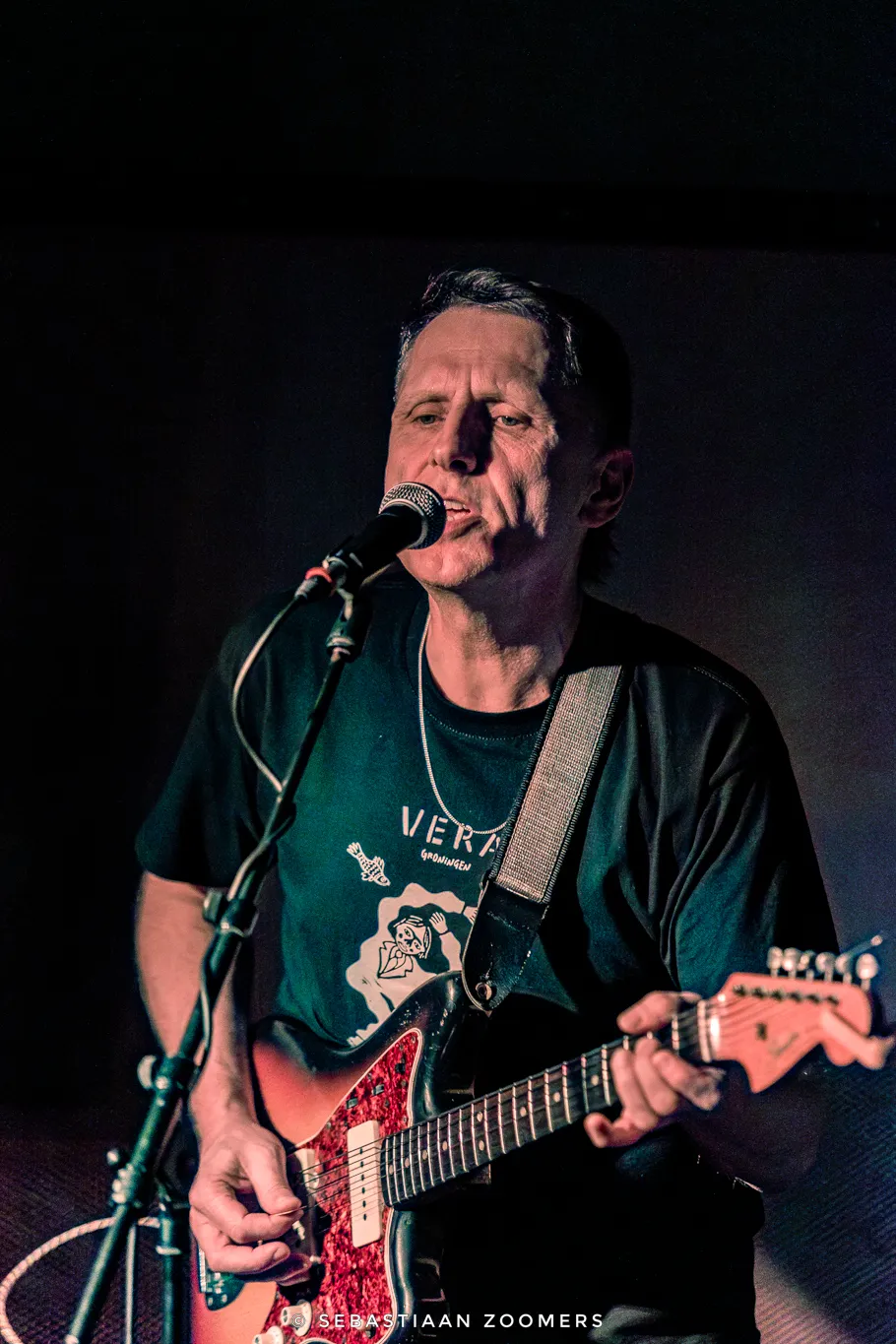 Cees’ zang is goed hoorbaar en wordt op het bedje van de snaarinstumenten geserveerd, zoals een band als DISHES dat ook doet. Bart, Cees en Aico zijn rustige en ervaren mannen, de stuwende drummer Ineke zorgt voor het vuur, zoals Gini Cameron dat deed bij Pip Blom. Ineke headbangt mee met haar slagen en ze zingt het openingsnummer ‘Outsider’ mee, al zien we dat alleen aan de bewegingen van haar lippen. Een opvallend detail: Cees heeft een t-shirt aan van ’s lands mooiste poptempel, Vera in Groningen, en verwijst daarmee naar het optreden dat ze daar op 30 januari gaven.