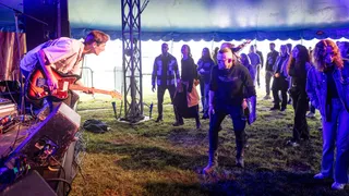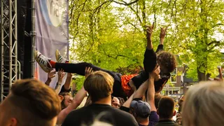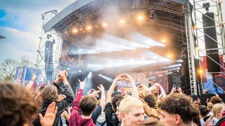 Zondag 5 mei lijkt het wederom een oer-Hollandse, druilerige Bevrijdingsdag te worden. Gehuld in poncho’s en regenlaarzen arriveren de eerste bezoekers rond het middaguur op de modderige drafbaan. De voorzorgmaatregelen blijken echter al snel voor niets als bij de eerste artiesten de zon door de wolken breekt. Truien worden om heupen geknoopt en poncho’s verdwijnen in de prullenbakken. En hoewel er af en toe nog schichtige blikken richting de lucht worden gegooid, betreden meer mensen het terrein. Het is tijd om echt onze vrijheid te vieren en te dansen tot de zon weer achter de wolken verdwijnt.