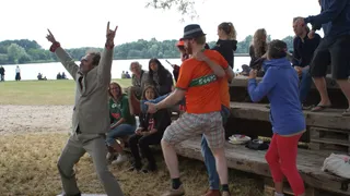 In de Tramontana op het Idyllisch Veldje kan iedereen zijn/haar zegje doen op Speakers Corner. Gisteren was de opkomst wat matig, vandaag voelen mensen wel de behoefte hun verhaal onder begeleiding van cabaretière Eva Crutzen met de rest van de wereld te delen. Best spannend natuurlijk, voor een hele groep je verhaal doen, niet wetende of je verhaal aanslaat bij het publiek.