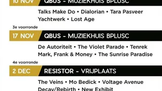 Bij de aftrap op 26 oktober passeren Salesmen, Silke Fenna, BB & The Binkie Boys, Anne Vera en JOASH de revue in de Resistor. Een mooi combi van eerdere deelnemers, lokale acts en van ver reizende sterren die interessante contrasten vormen met elkaar.