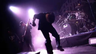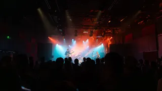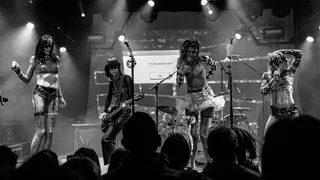 Onder de laatste spotlight in de zaal van Vera ligt een reiskoffer, van Amerikaanse grootte, opengeklapt op de grond. De koffer is gevuld met merchandise: truien, shirts, flyers, geplastificeerde foto’s, platen, rugzakken, topjes en zelfs strings bedrukt met de tekst "cumgirl8". Alles wordt uitgestald en klaar gemaakt voor verkoop. Terwijl het licht in de zaal langzaam dimt, verdwijnt ook het kleurenspectrum. Het publiek smelt samen tot één geheel, gehuld in een bijna uniforme, donkere kledingstijl, slechts onderbroken door het subtiele glimmen van piercings. Alles sluit naadloos aan bij de melodie van de avond. Een die draait om bandieten en buitenstaanders, uitschot en rebellie – het soort dat zich niks aantrekt van regels of conventies. De jongerencultuur die wantrouwen koestert tegen grote ideologieën, terwijl de autonomie van het individu wordt gevierd. Kortom: punk in zijn puurste vorm.