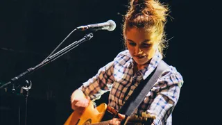 Als je als achteloze recensent Belgische aanstormende vrouwelijke singer-songwriters op een rijtje zet, zie je allemaal eigenwijze knotjes. Goed, zo “gravity defying” als de knot van Marie Van Uytvanck van Kids With Buns is het knotje van Emmy d’Arc niet. Maar het steekt met eenzelfde achteloze zelfbewustheid de hemel in. En waarom ook niet? Want sinds een jaar of vier is Emmy behalve muzikante ook een bona fide songwriter en met compleet nieuw plaatwerk onder haar arm laat ze ons, naast enkele covers, vanavond kennismaken met een tiental hagelnieuwe liedjes. Allemaal afkomstig van dat prachtig vormgegeven, met zilverfoliedruk en tien gekleurde Emmy’s op de hoes uitgevoerde, debuutalbum.